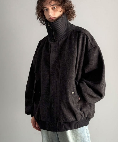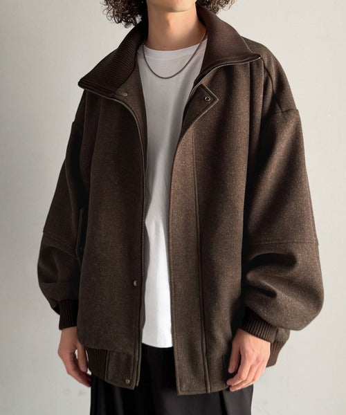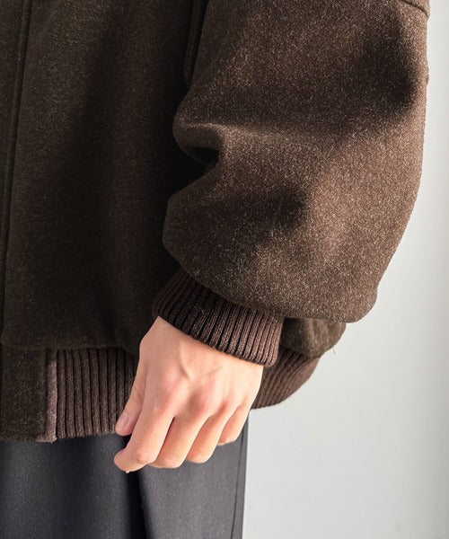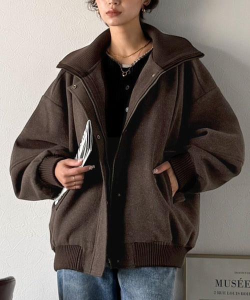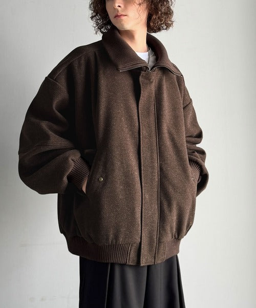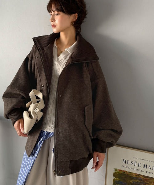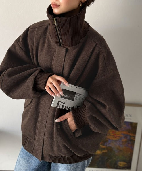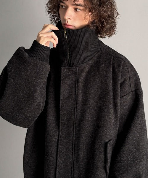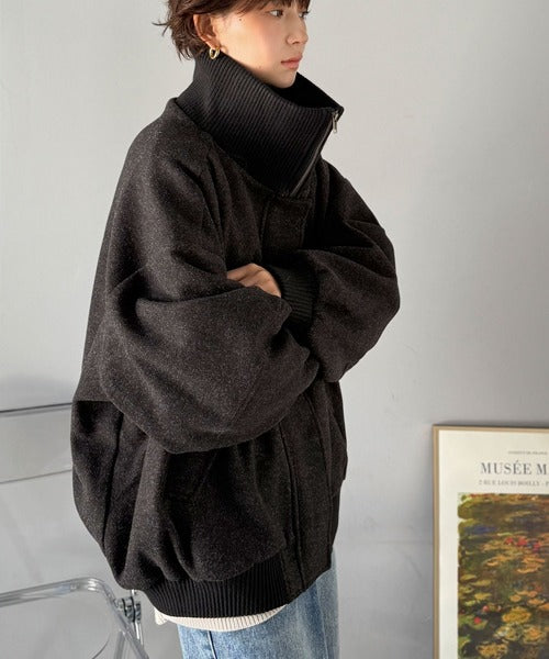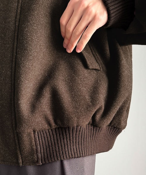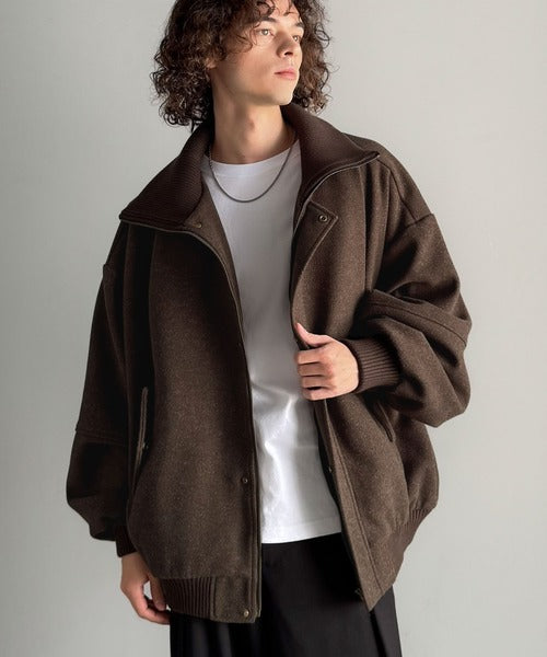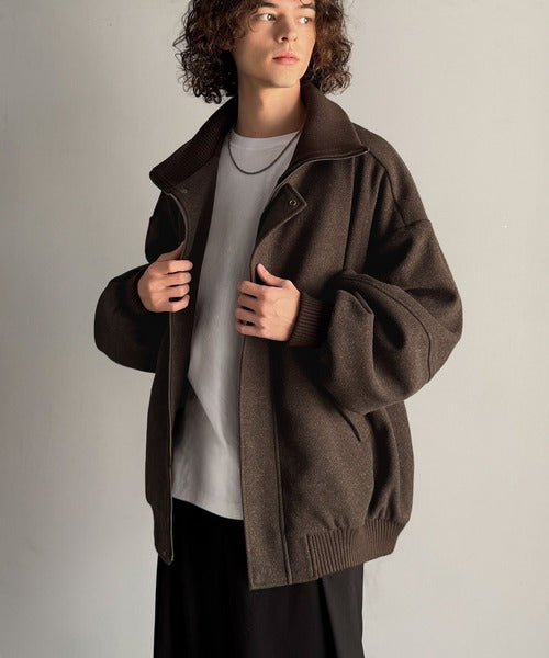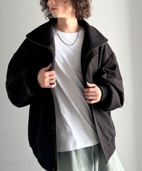 《JaVaジャバコラボ》ビンテージ感のあるリブがアクセント。シンプルながら存在感のある一着。 襟リブニットメルトン比翼ブルゾン オーバーサイズ jm1070178
