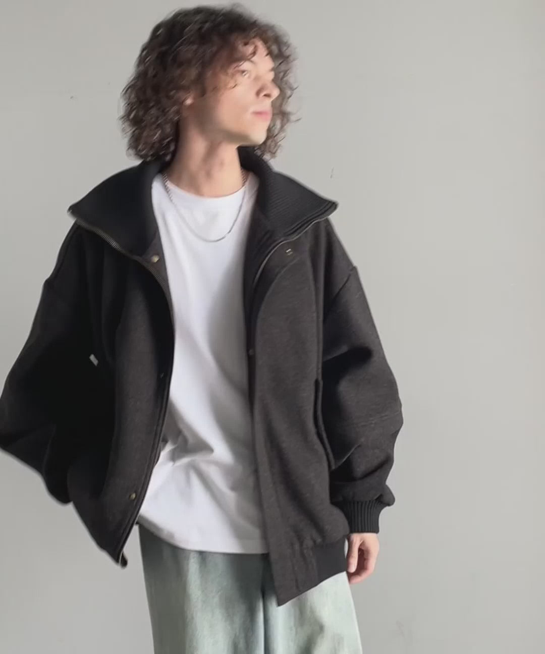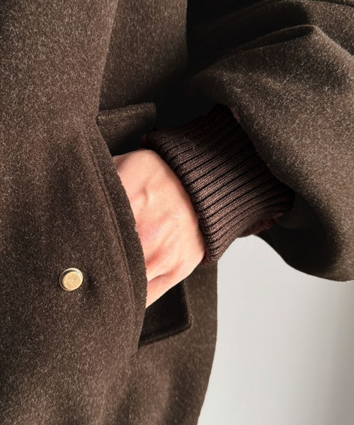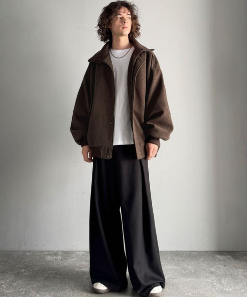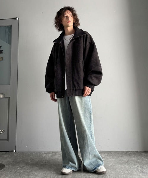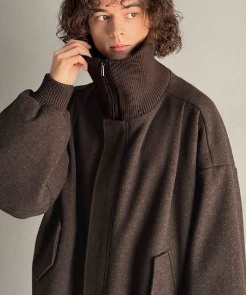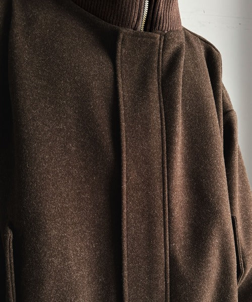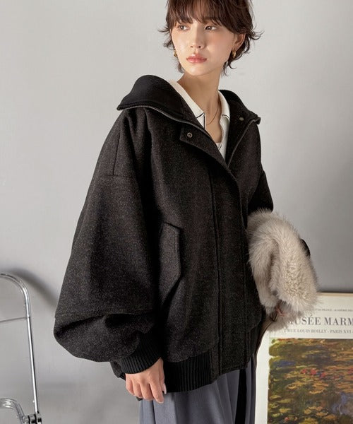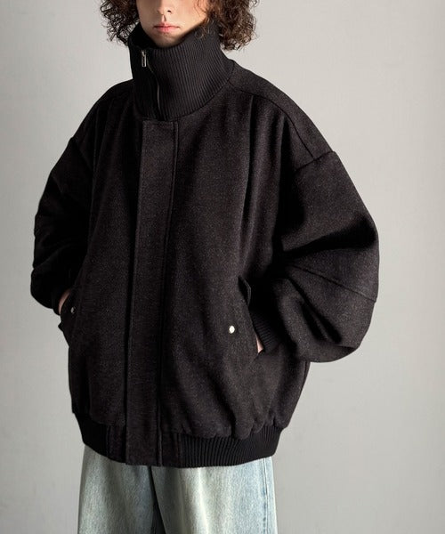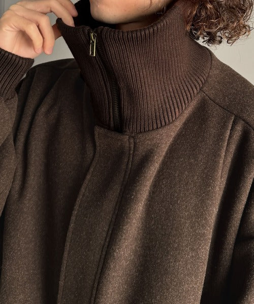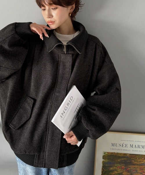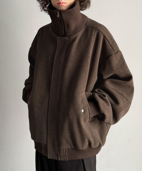 《JaVaジャバコラボ》ビンテージ感のあるリブがアクセント。シンプルながら存在感のある一着。 襟リブニットメルトン比翼ブルゾン オーバーサイズ jm1070178