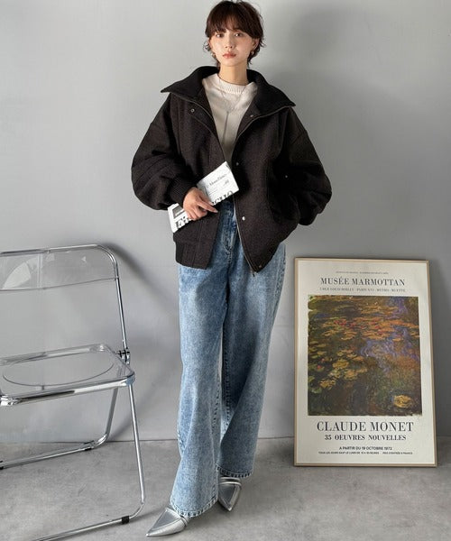 羽織るだけでこなれる。襟リブが効いた上品なメルトンブルゾン。
