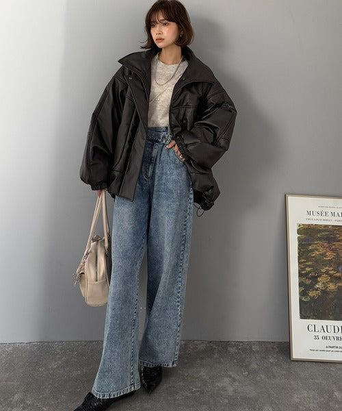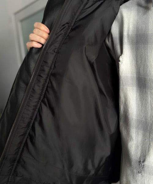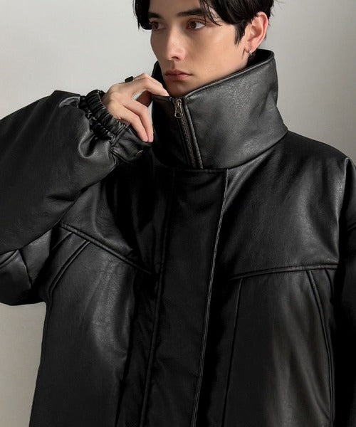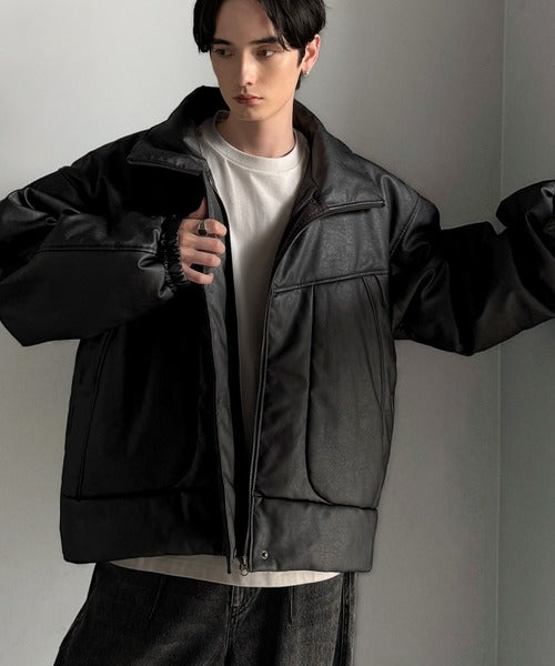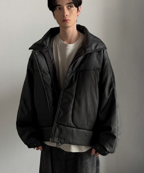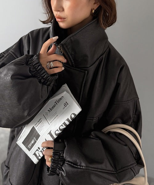 ・防寒性の高い中綿入りフェイクレザー