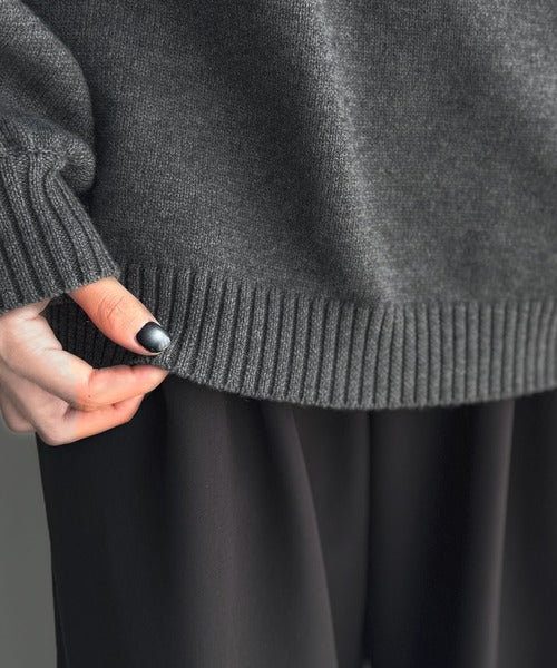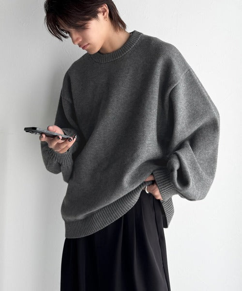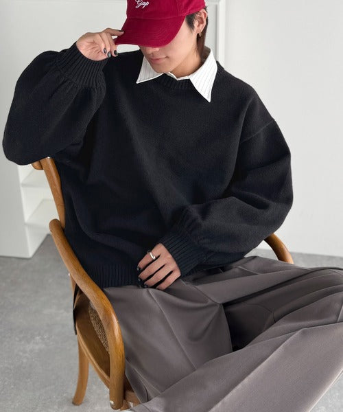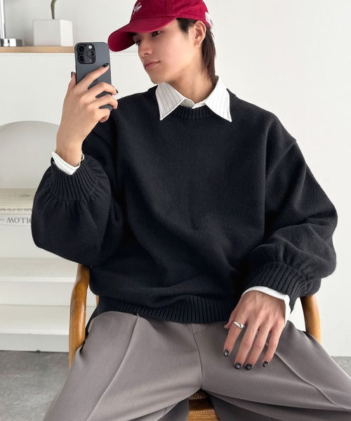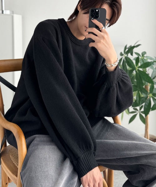 ゆったりとしたサイズ感とボリュームのある袖は、シンプルながら存在感のあるニットです。