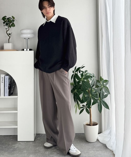 ワイドパンツやテーパードパンツとの組み合わせで、リラックス感のあるカジュアルスタイルに。