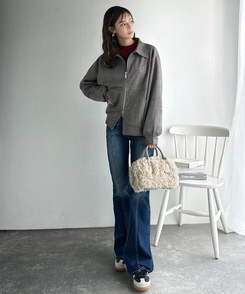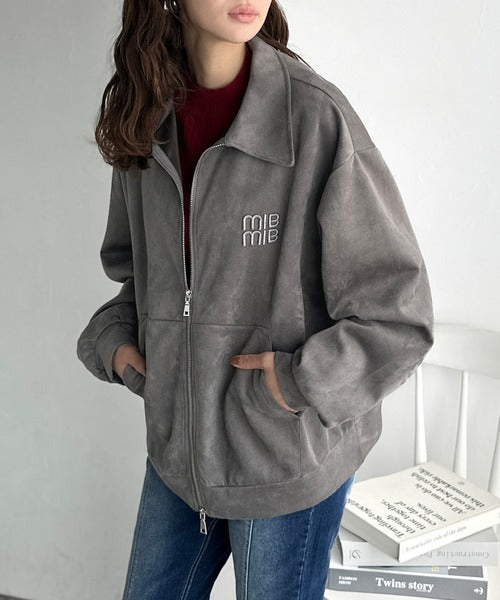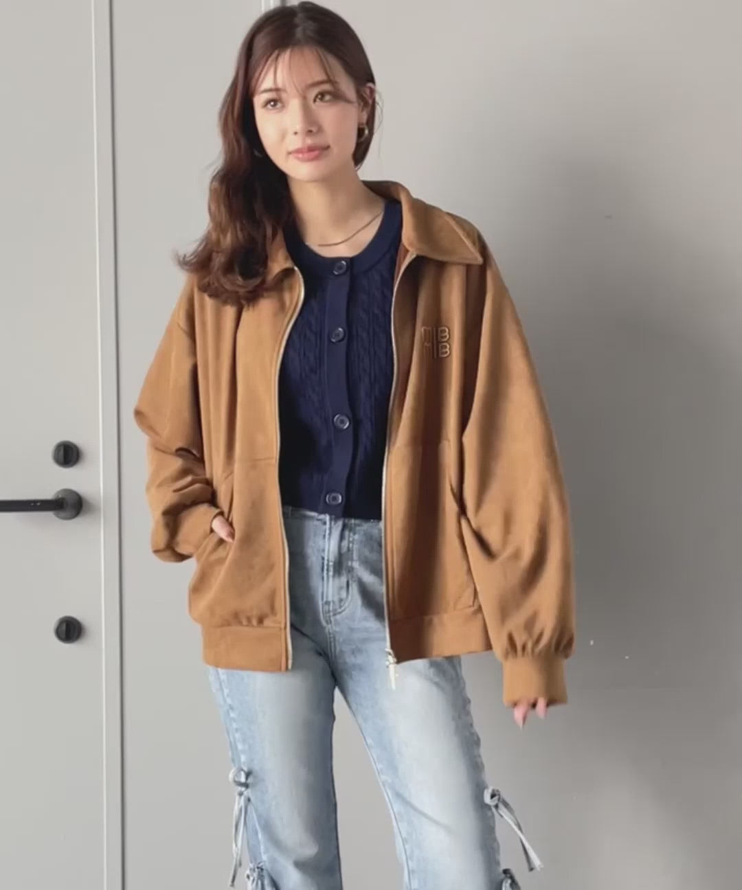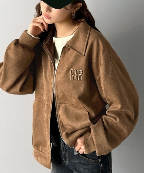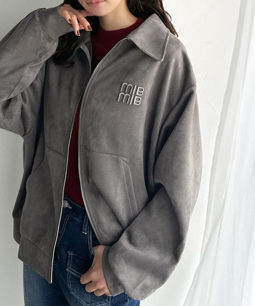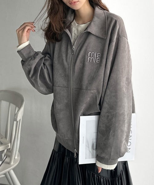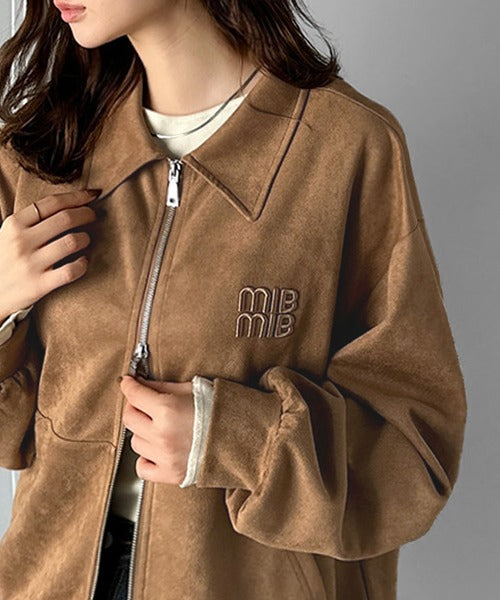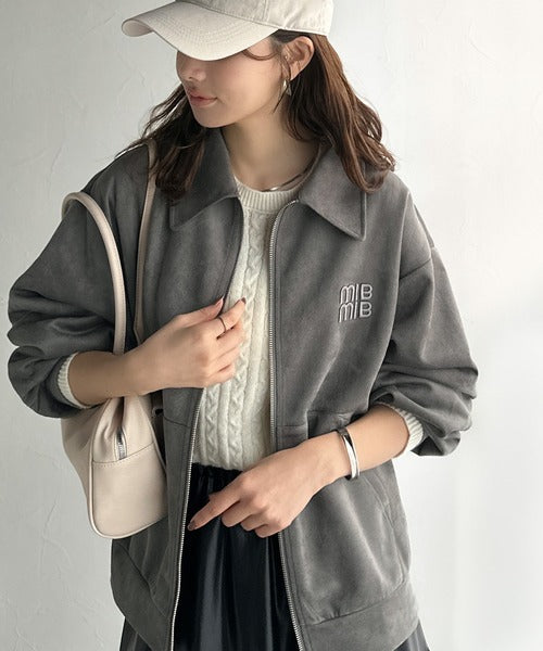 【mily bilet】柔らかタッチで上品見え◎立体刺繍デザインスエードポンチ素材ダブルジップアウター mi1359028