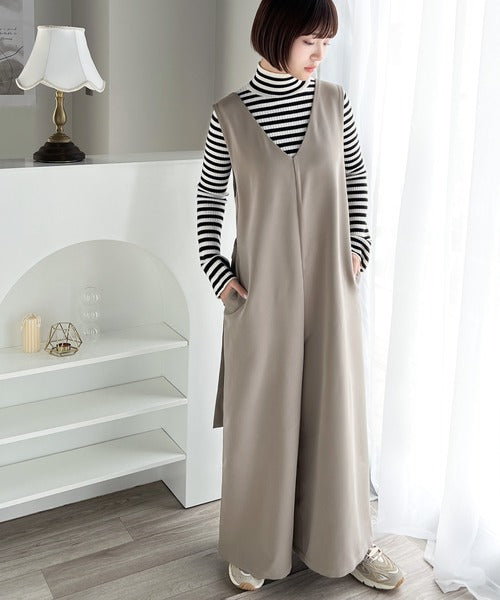 ストンとしたシルエットで華奢魅せのオールインワン。