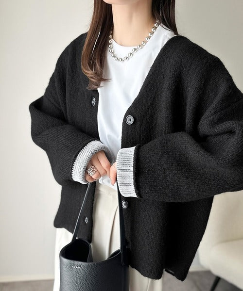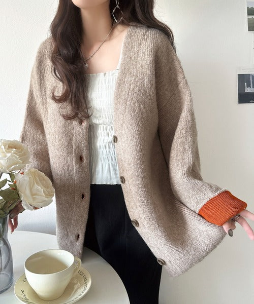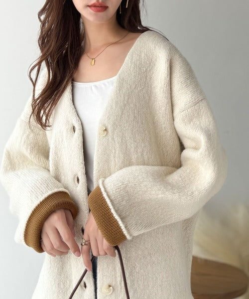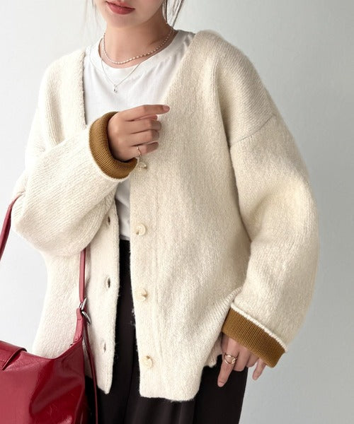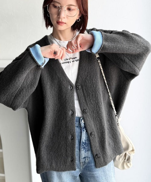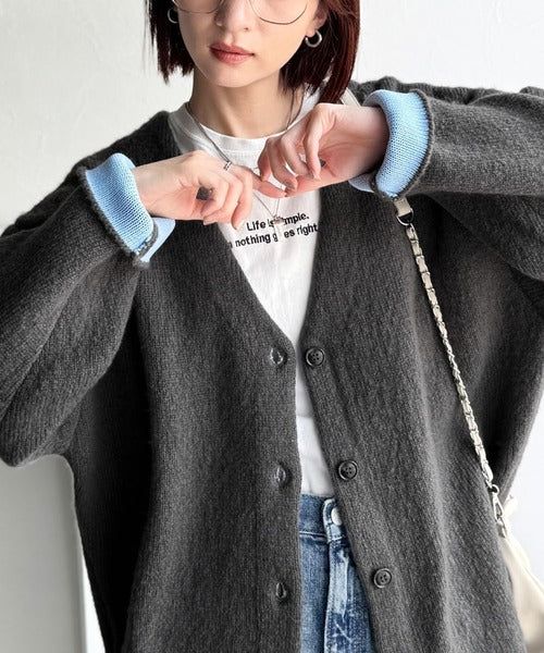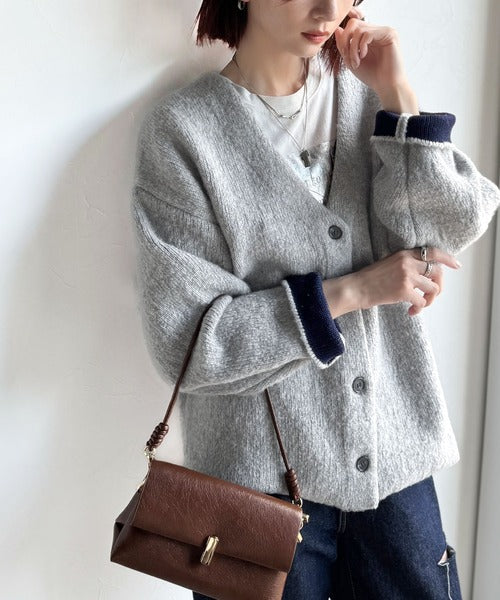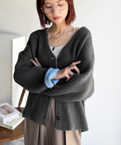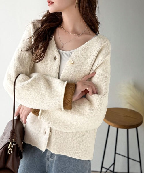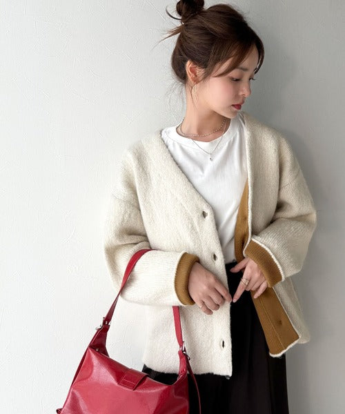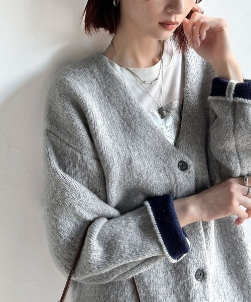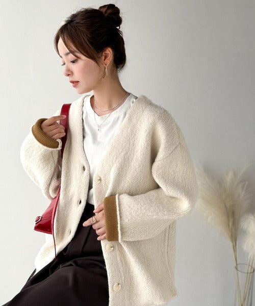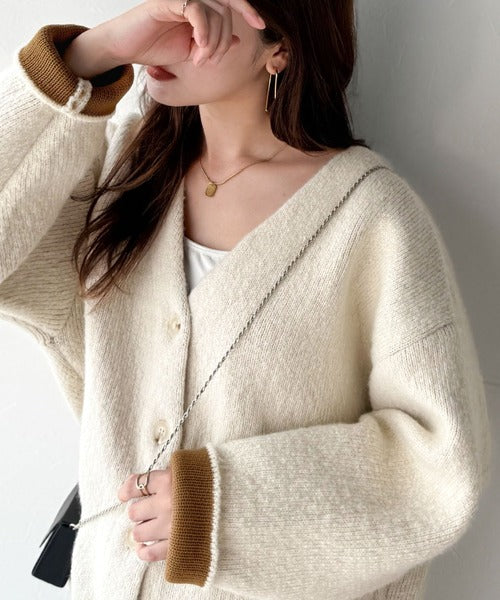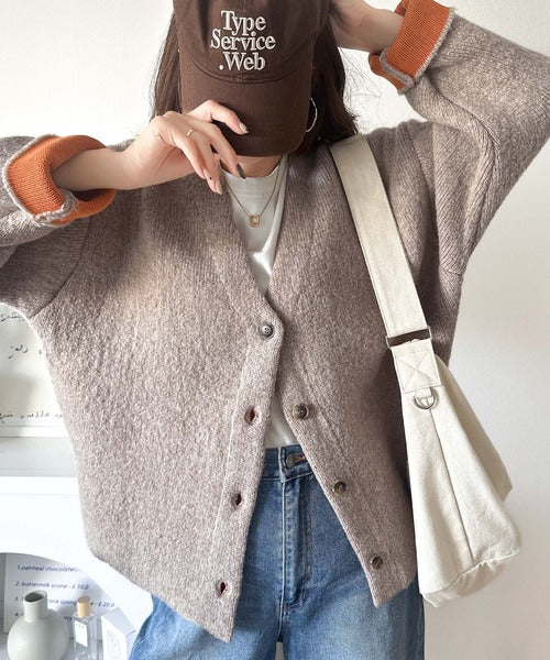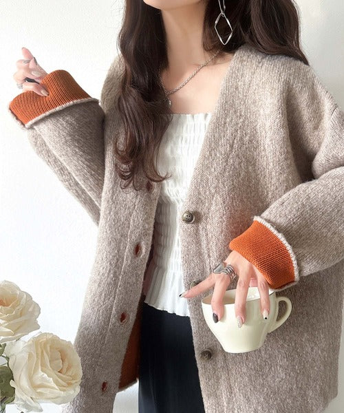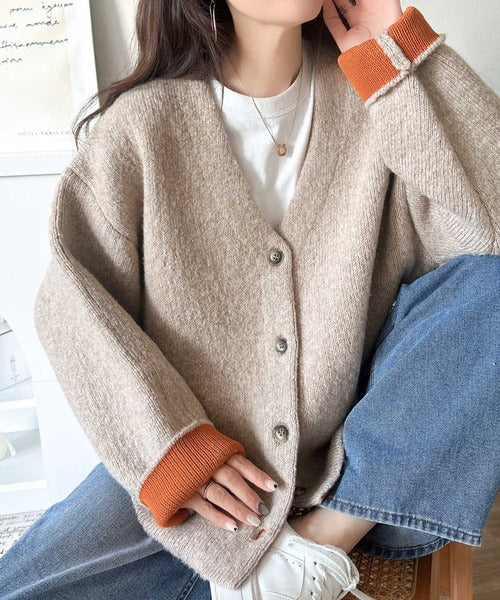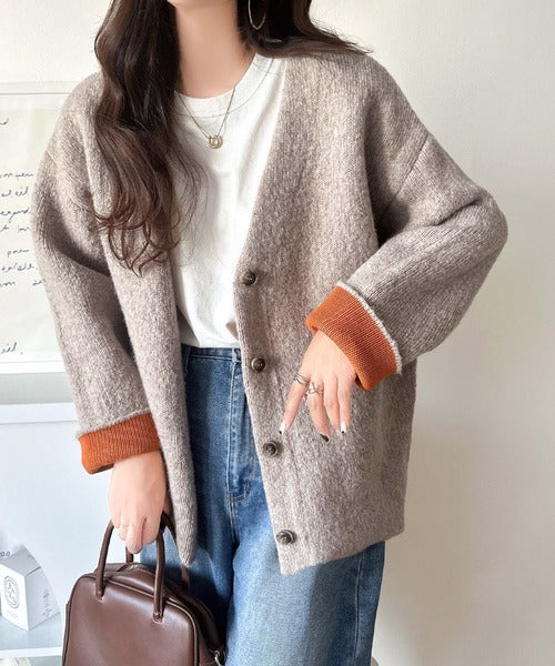 袖先から薫る。こなれ感たっぷりのこっくり配色。Wフェイス裏配色Vネックカーディガン ce1020284