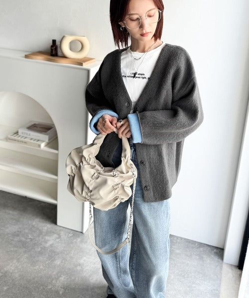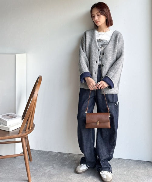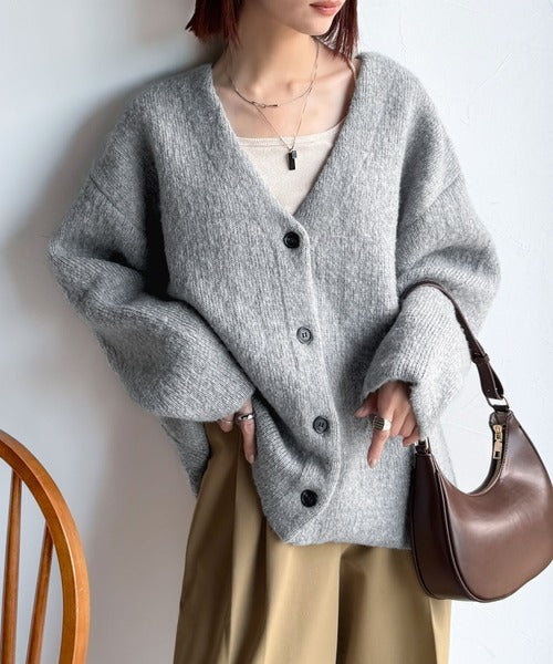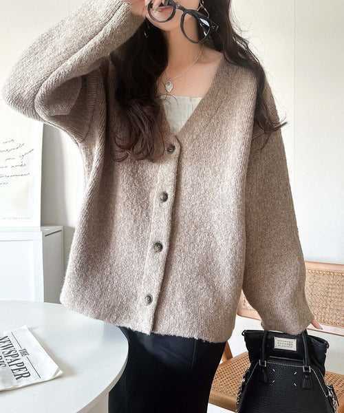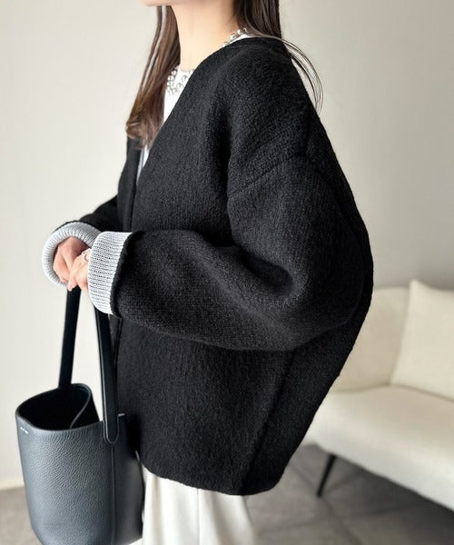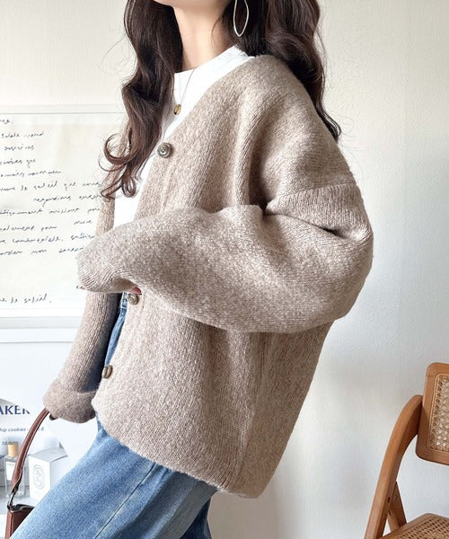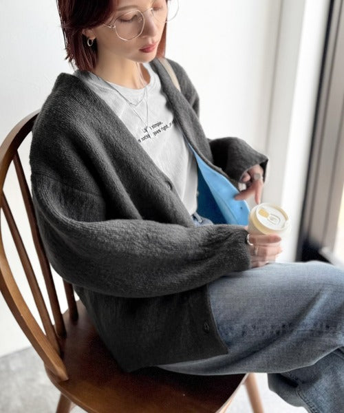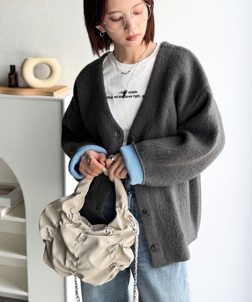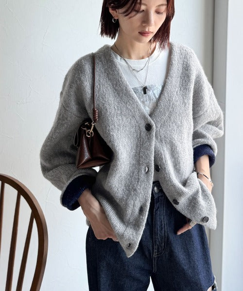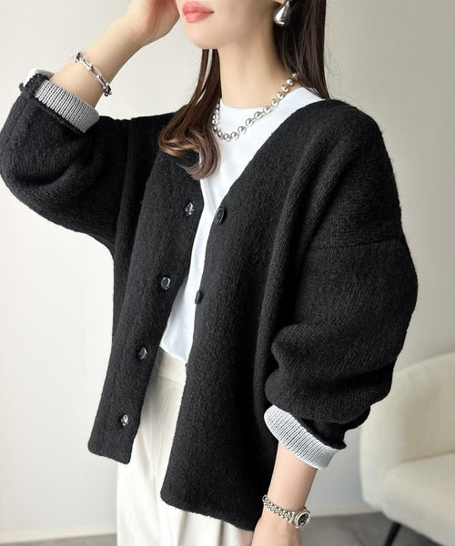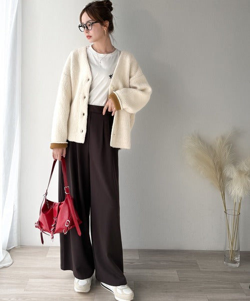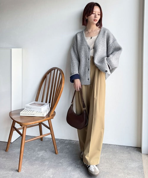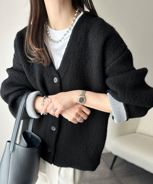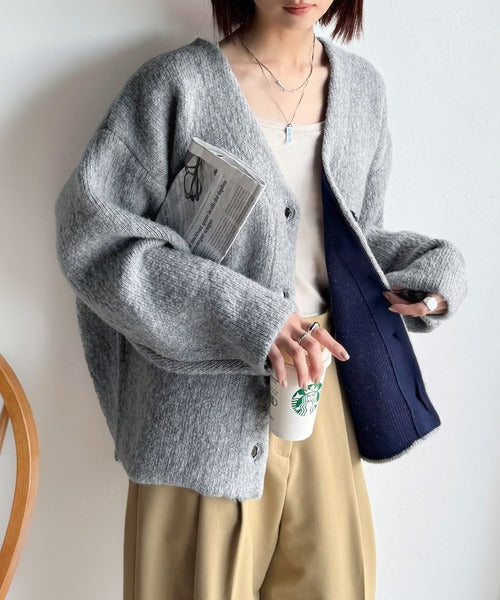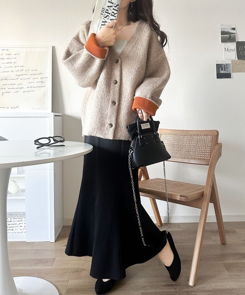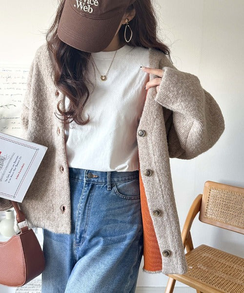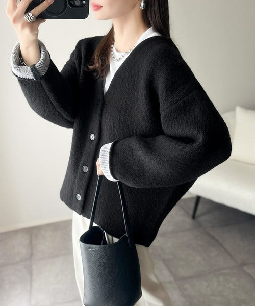 袖先から薫る。こなれ感たっぷりのこっくり配色。Wフェイス裏配色Vネックカーディガン ce1020284
