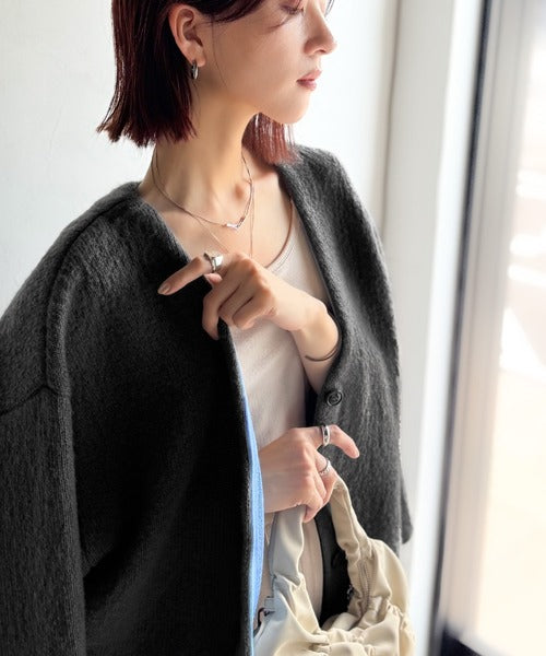 羽織った際に袖や前からふわっとチラ見えする配色カラーが、コーデにさりげない奥行きをプラス。