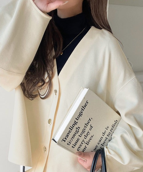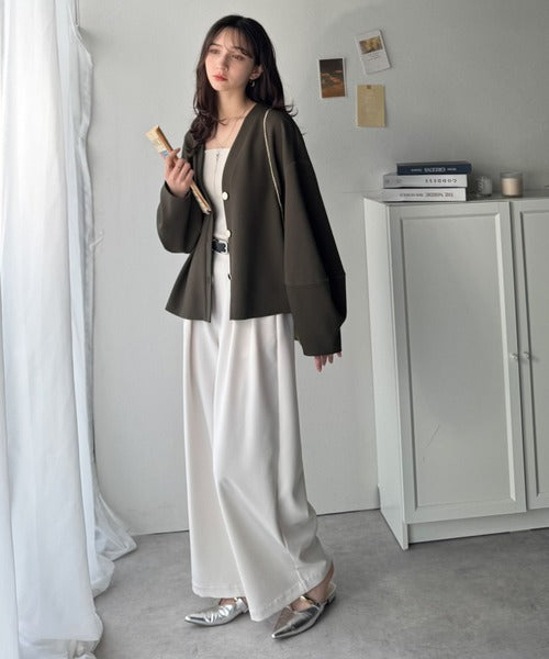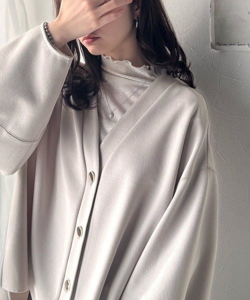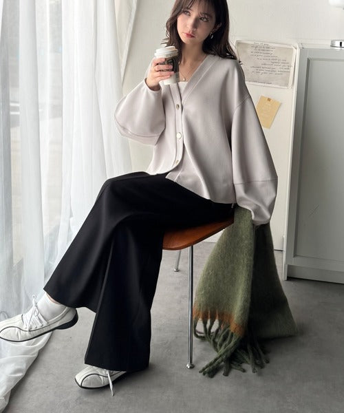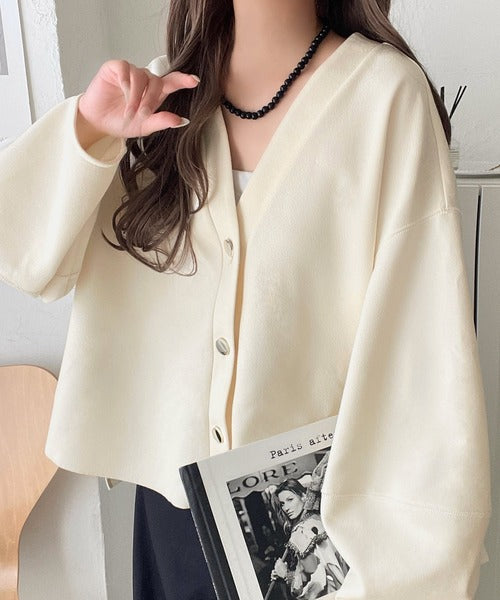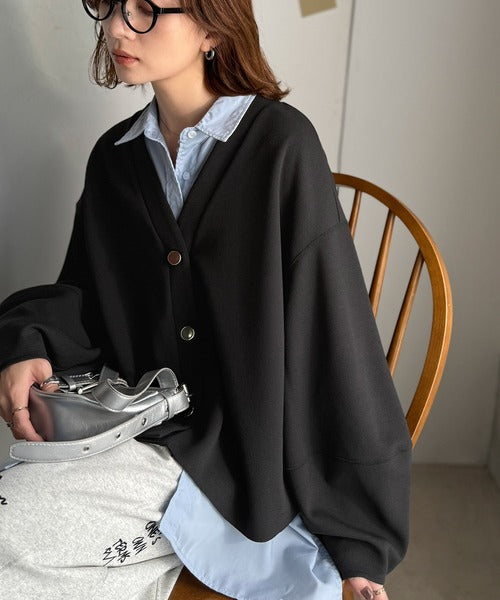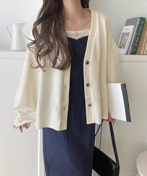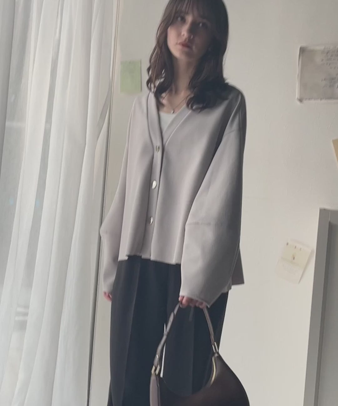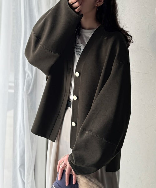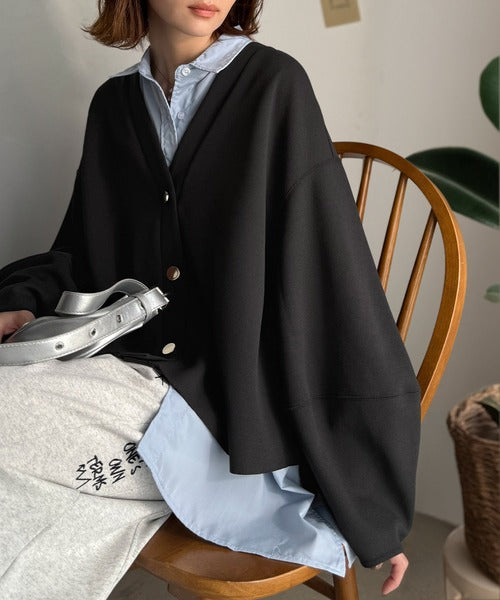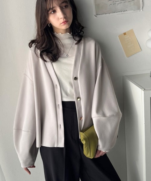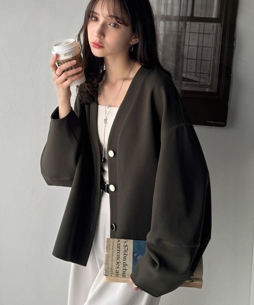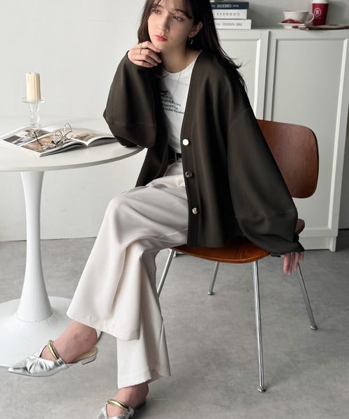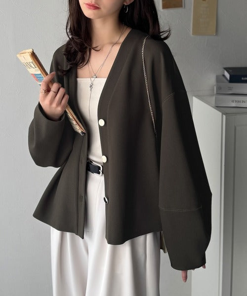 今季のトレンド、ランタンスリーブが特徴のVネックカーディガン。