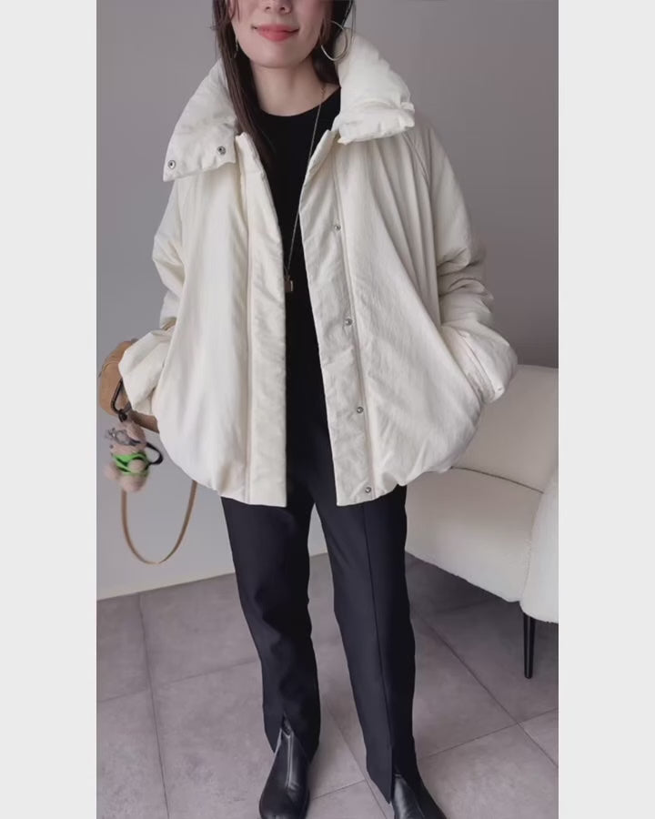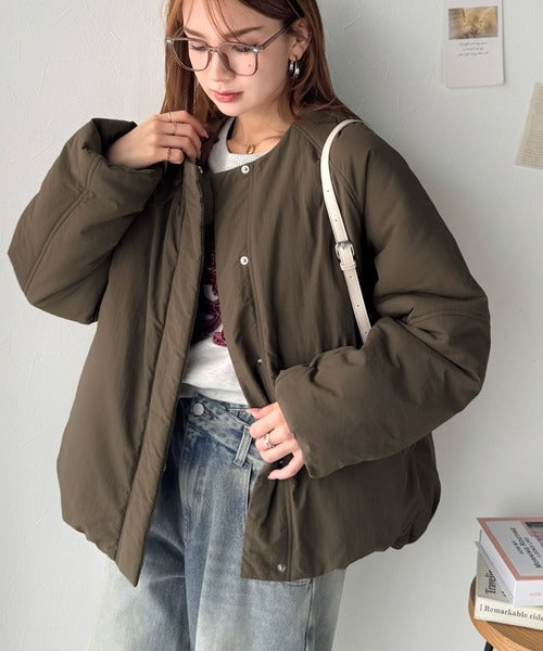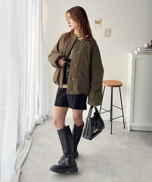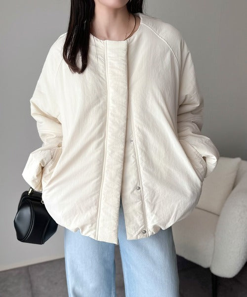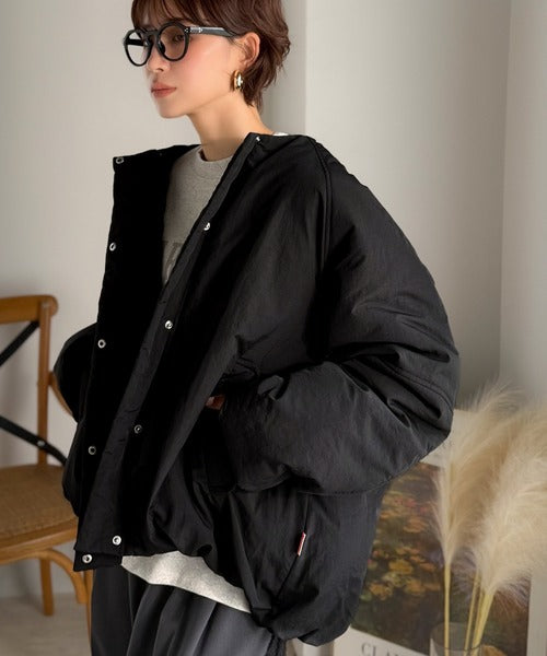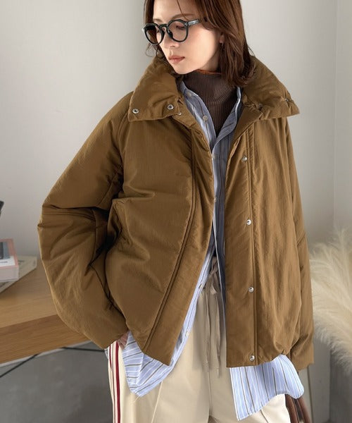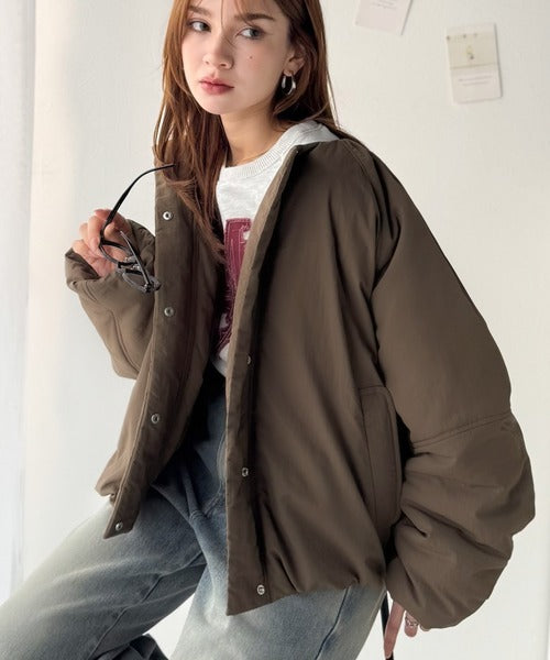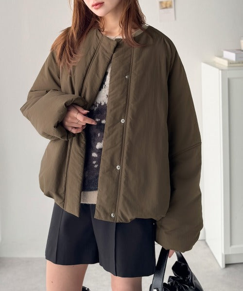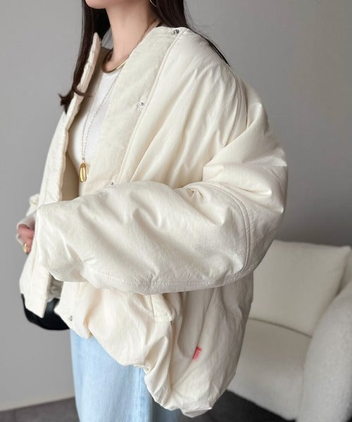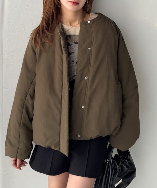 《JaVa ジャバコラボ》衿2WAYで旬映え。衿取り外し可能エッグライン中綿ブルゾン jv1240100