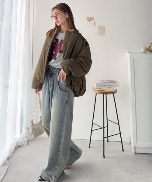 ゆったりしたサイジングで厚手のニットやパーカーも中に合わせやすい魅力の優秀アイテム!