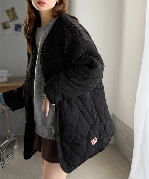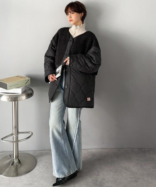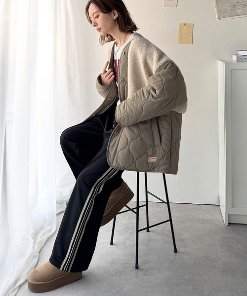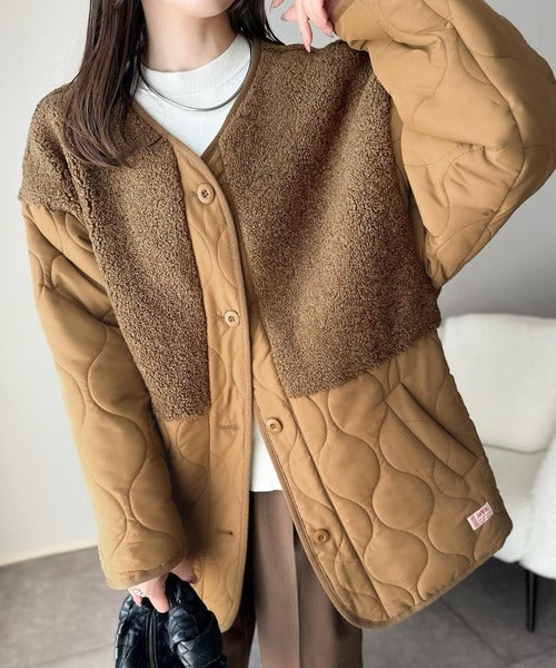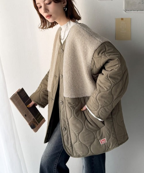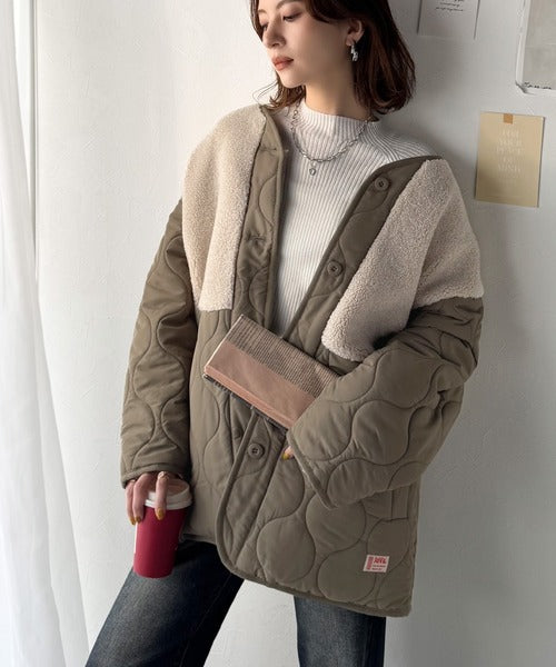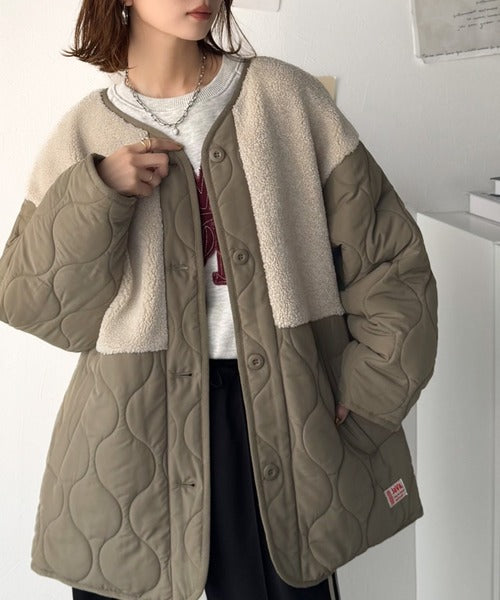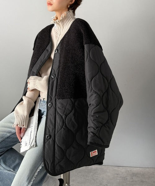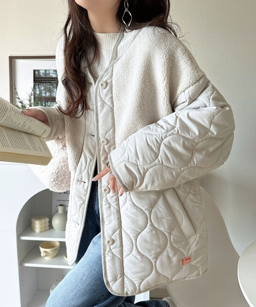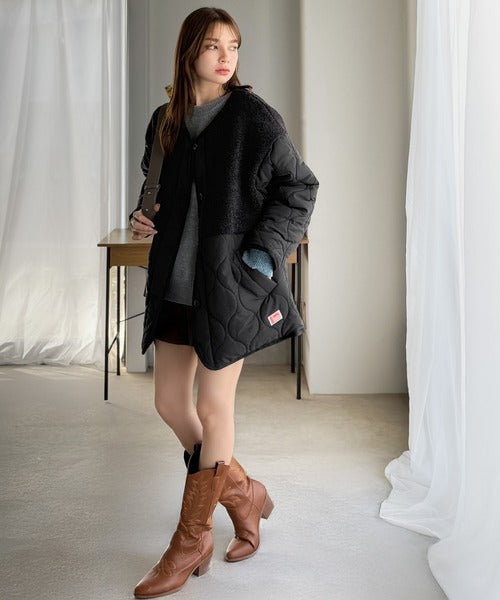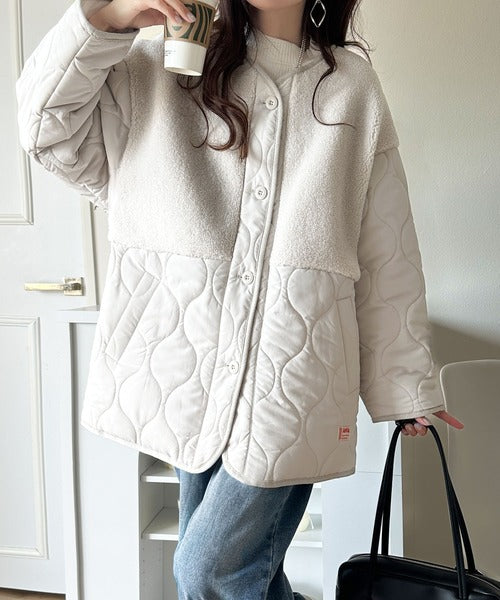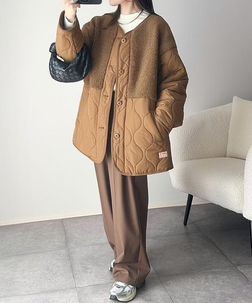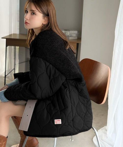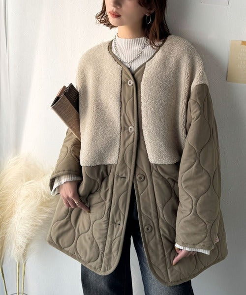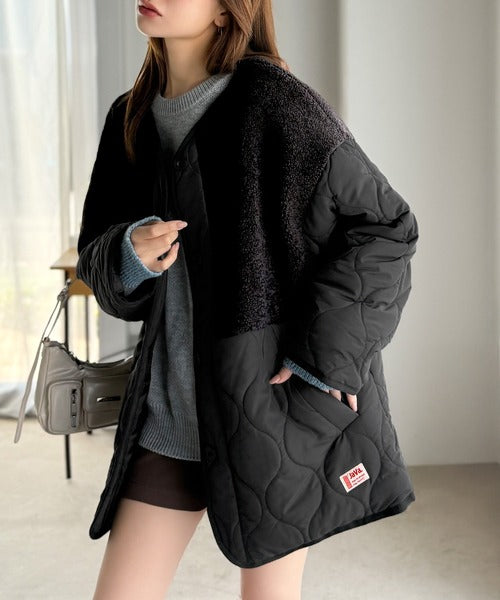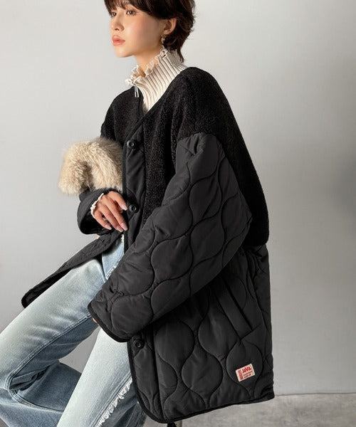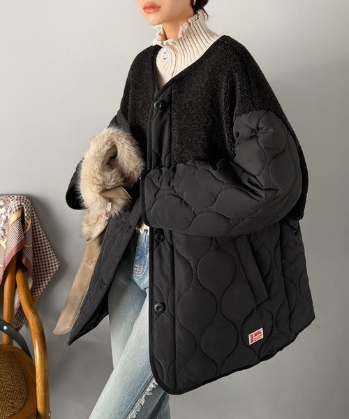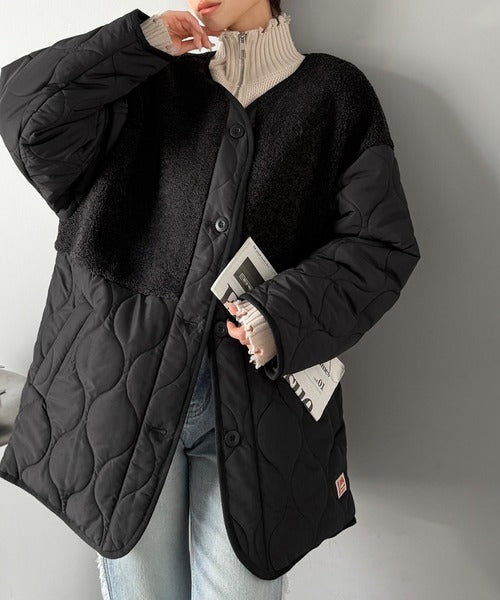 トレンド感たっぷりのボア切替ひょうたんキルティングコート♪