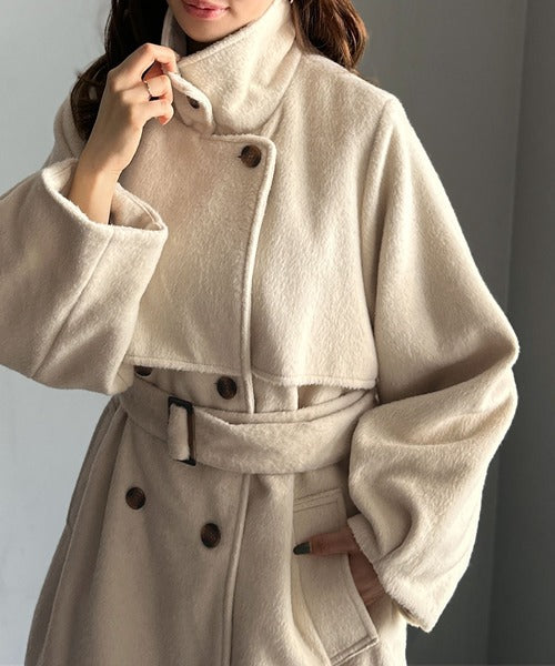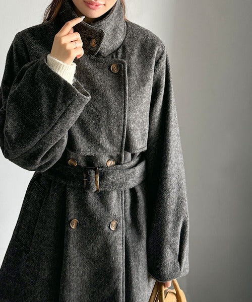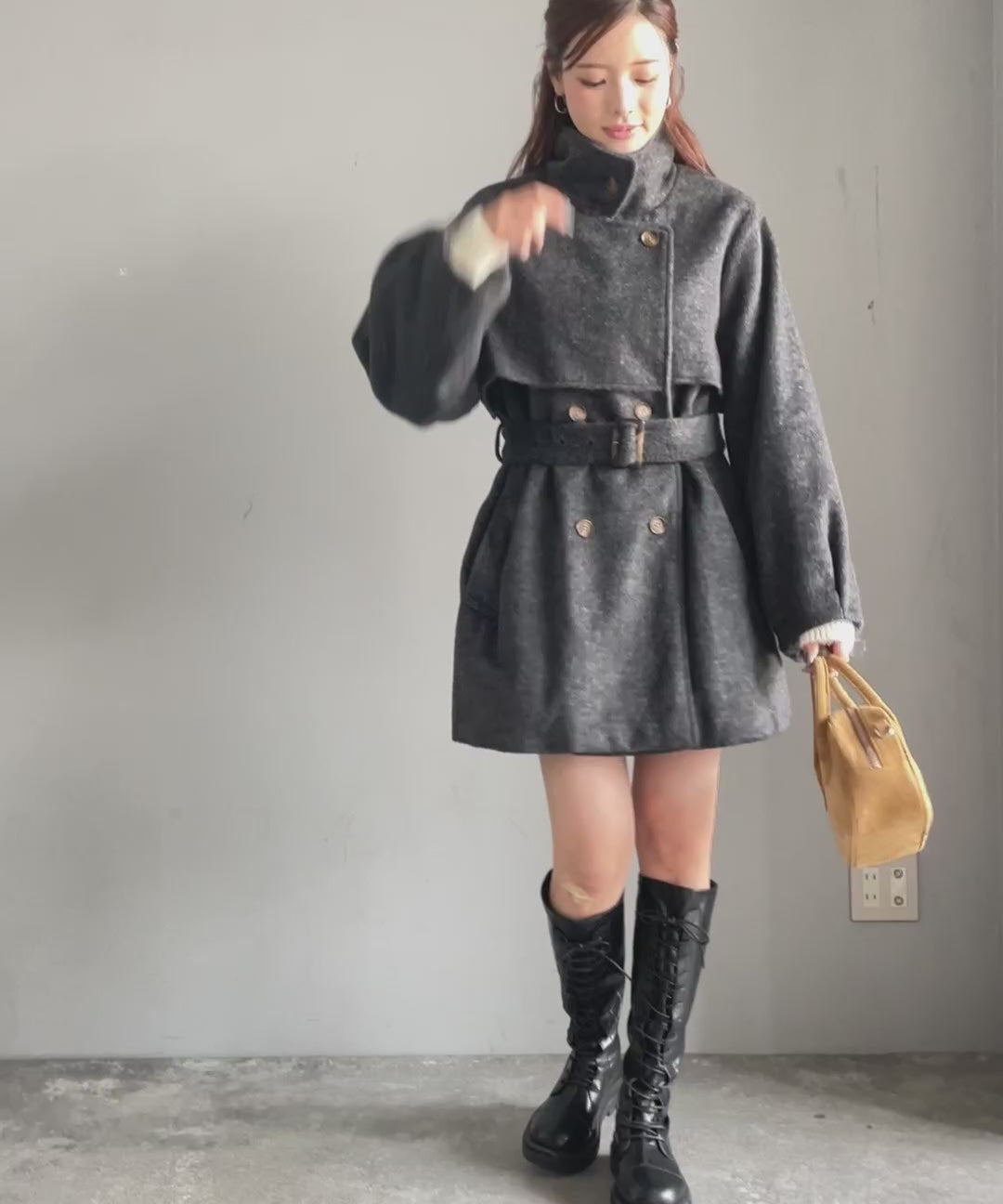 【mily bilet】どの角度から見てもかわいく冬のスタイルを格上げ。フェザーショートシャギーバックル使いコート(ミドル丈) mi1019096