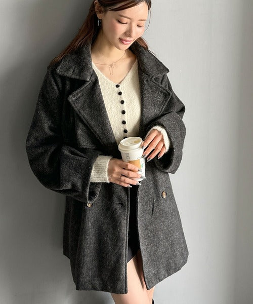 柔らかなフェザーショートシャギー素材を使用したコート。