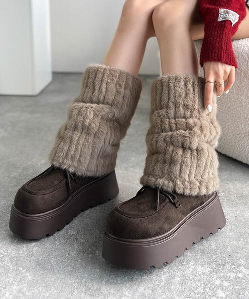 【mily bilet】ファー着脱可能♪2WAYヌバック調素材ボリュームソールファームートンブーツ mi1129025