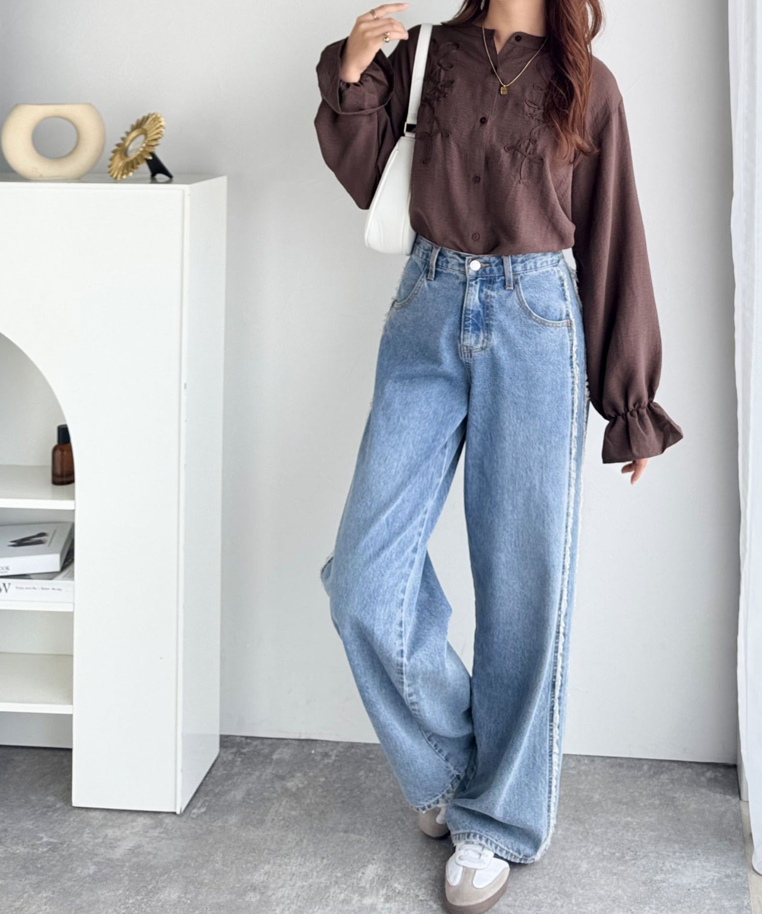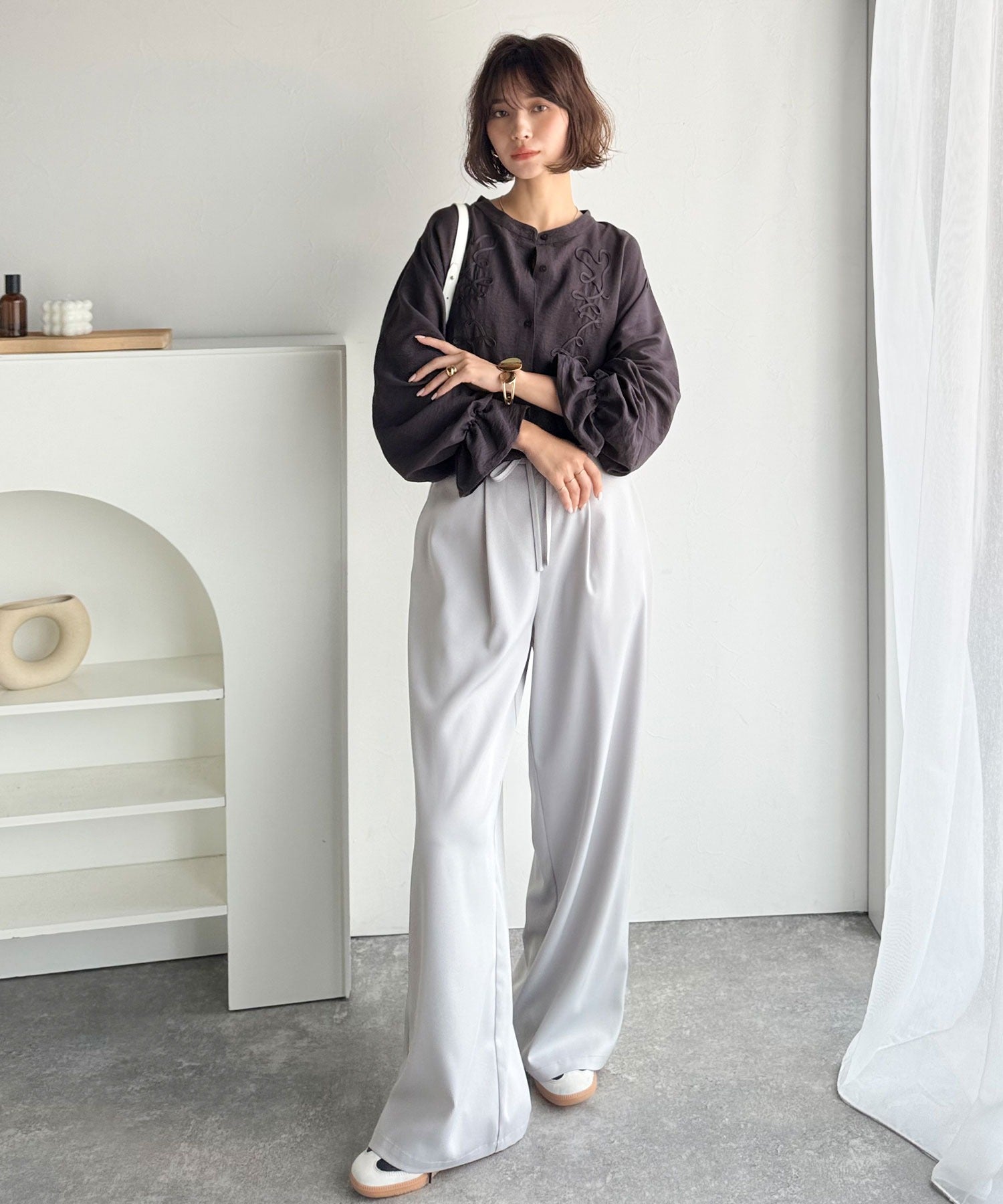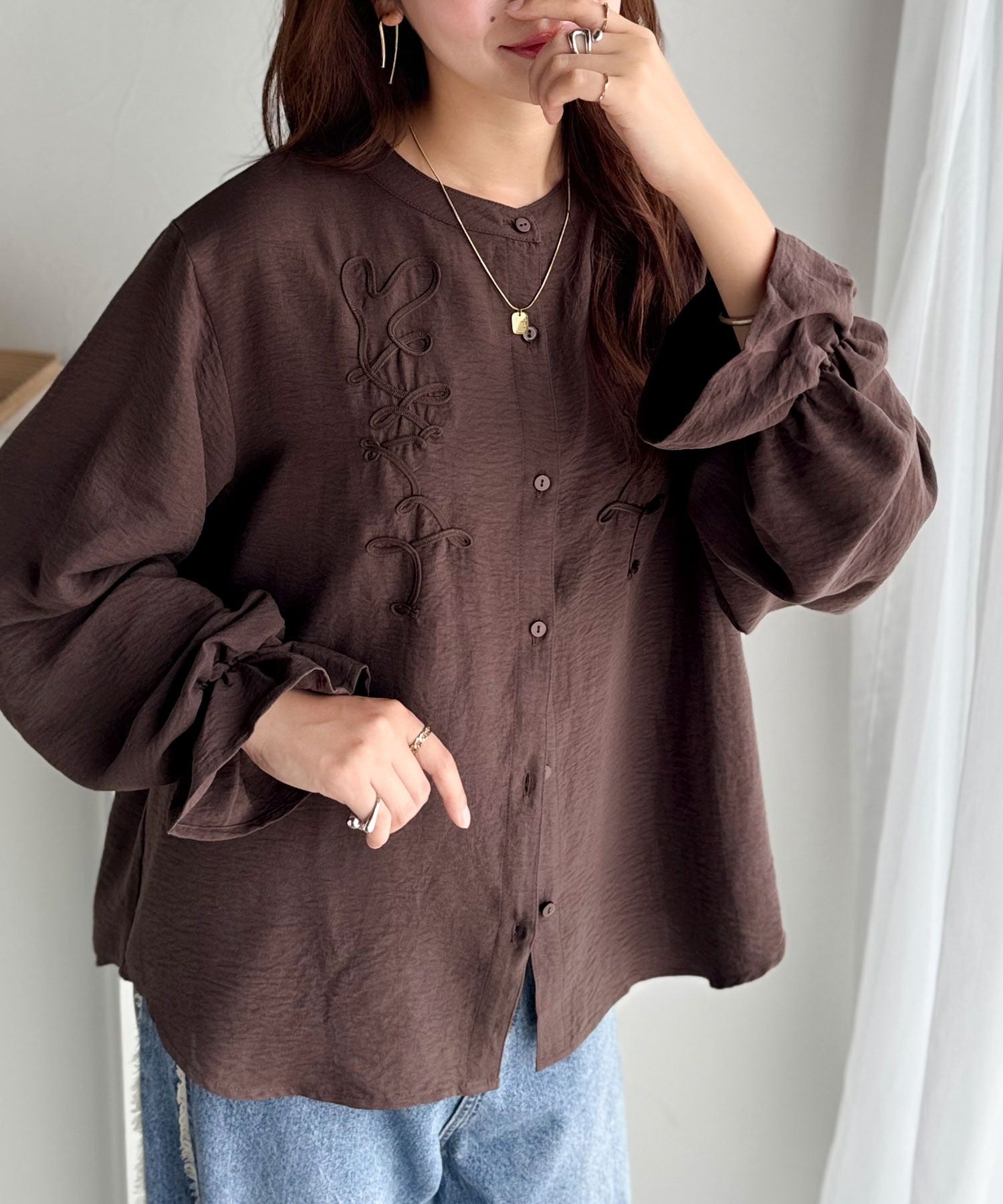 袖コンシャスが上品に映える♪コード刺繍キャンディスリーブシャツ(長袖) ce1010497