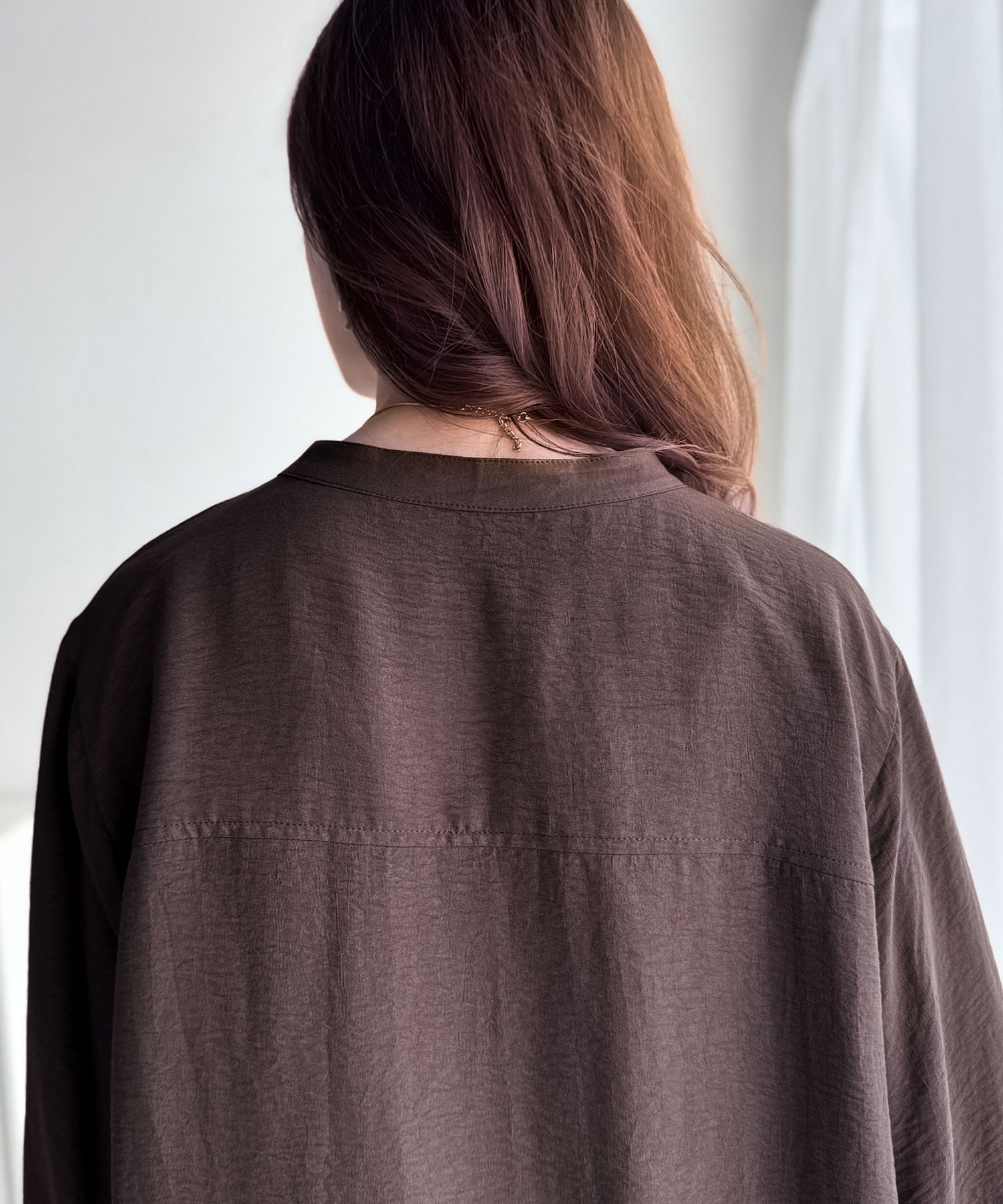 しぼ感のあるパウダーデシン素材。軽やかで肌なじみも良く、春秋にぴったりです。