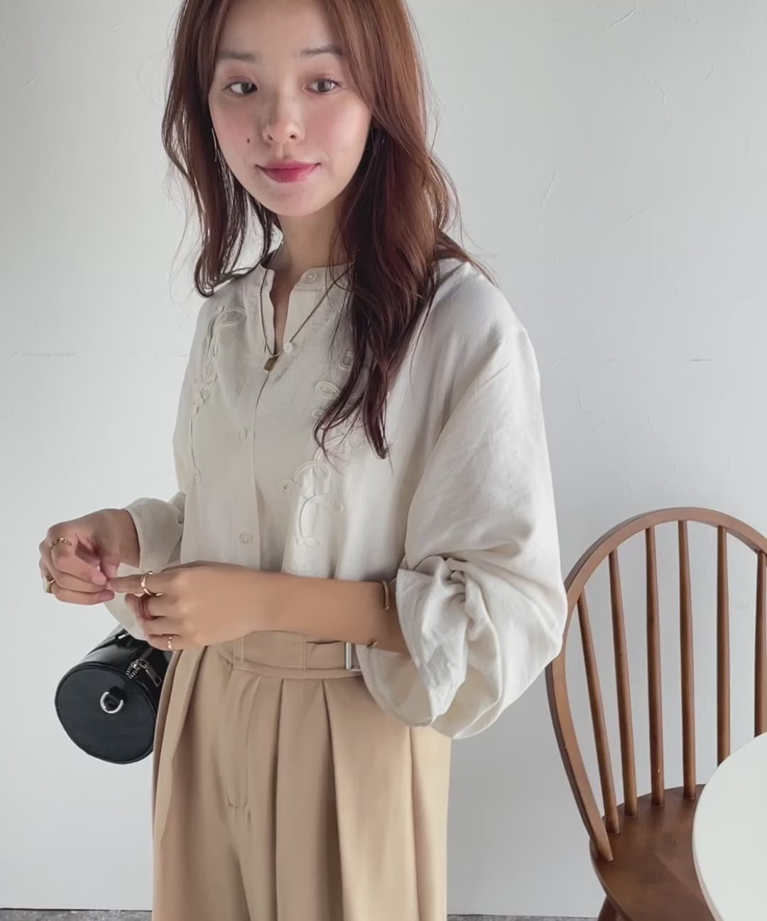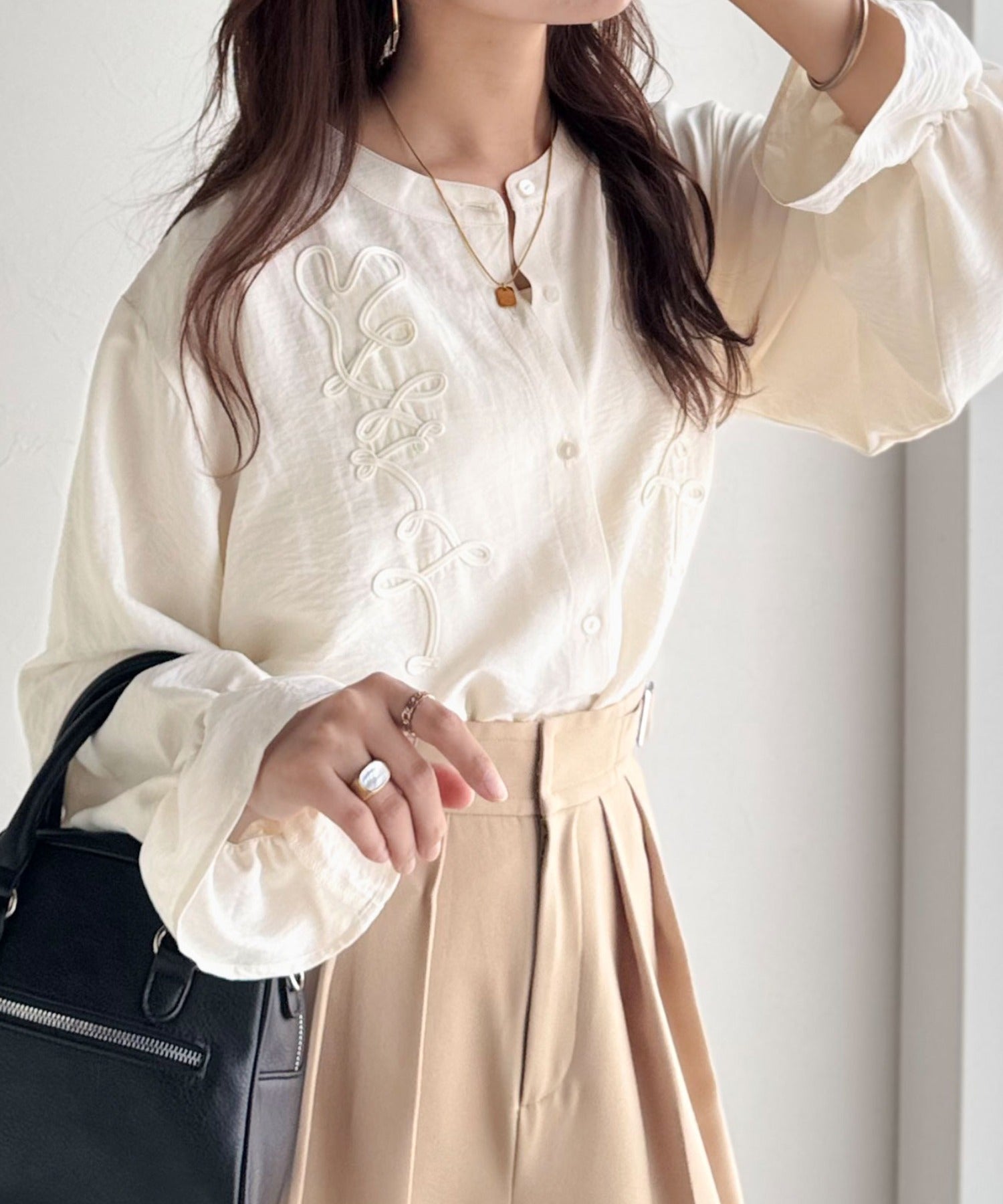 ぽこっと立体感のあるコード刺繍を施した、華やかさと着やすさを兼ねたシャツ♪