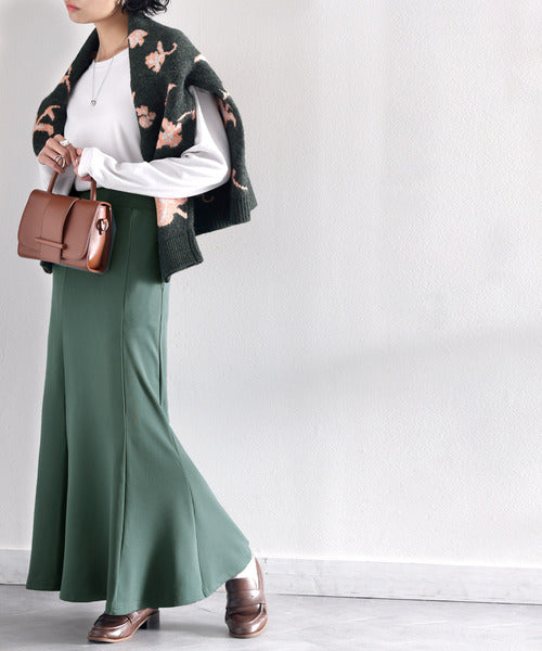 裾にかけて広がるマーメイドシルエットは、目線が下にいくから着痩せ効果も◎