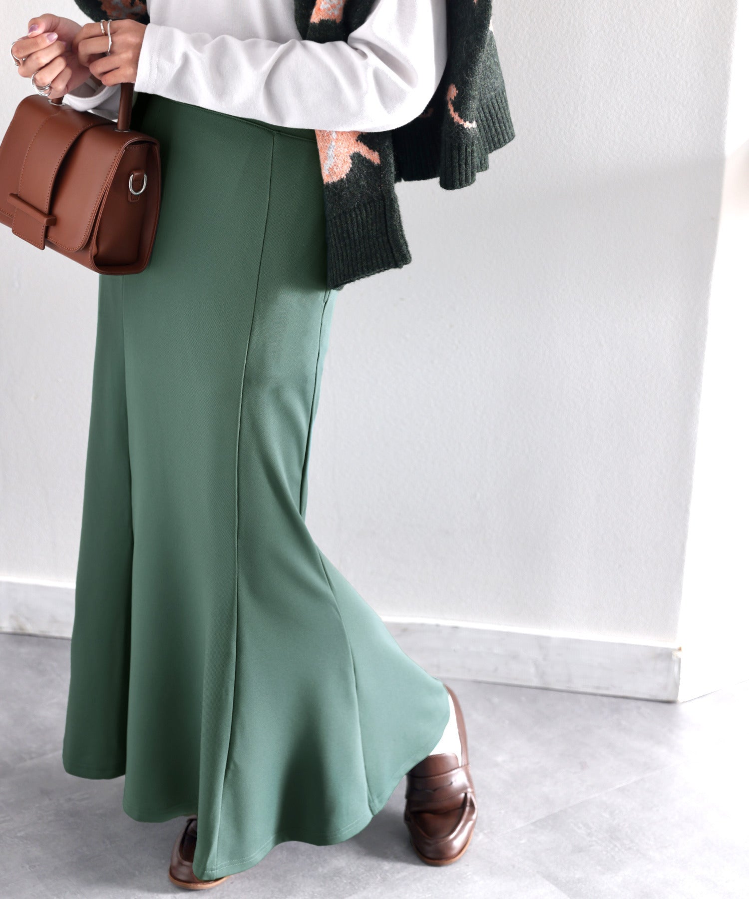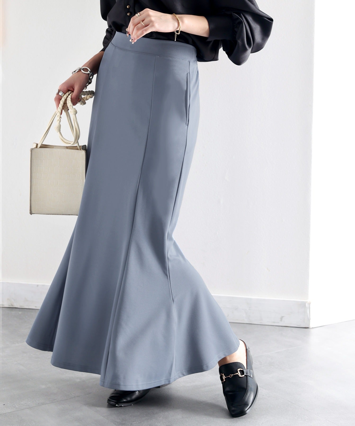 トレンドのマーメイドシルエットでレディな雰囲気。