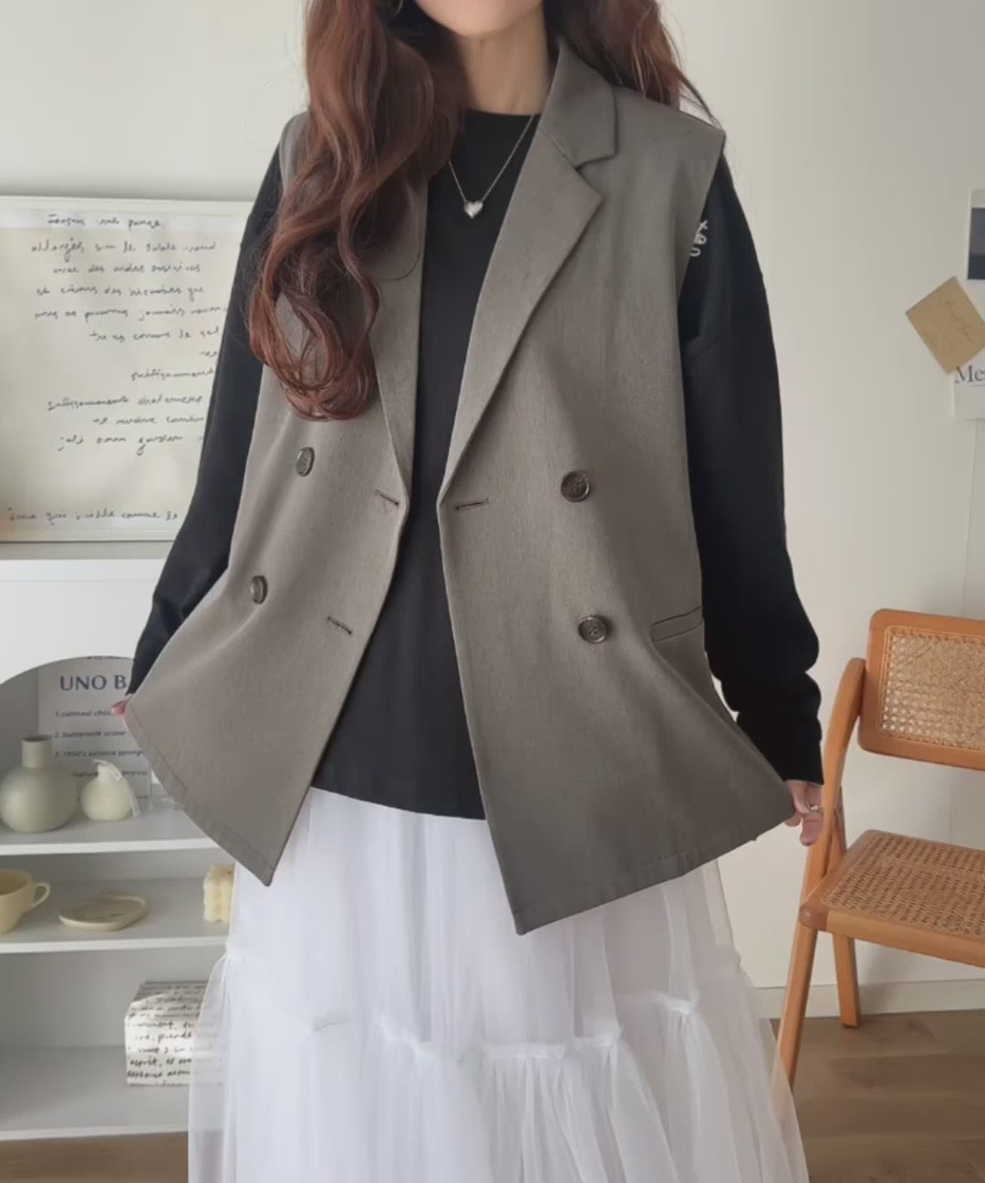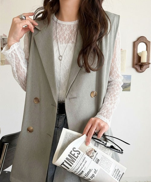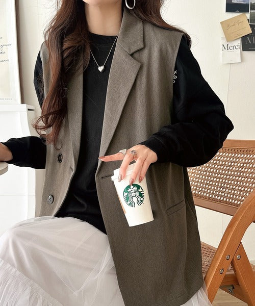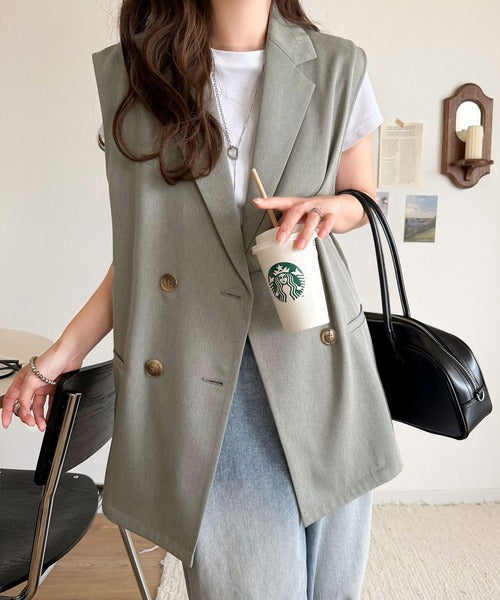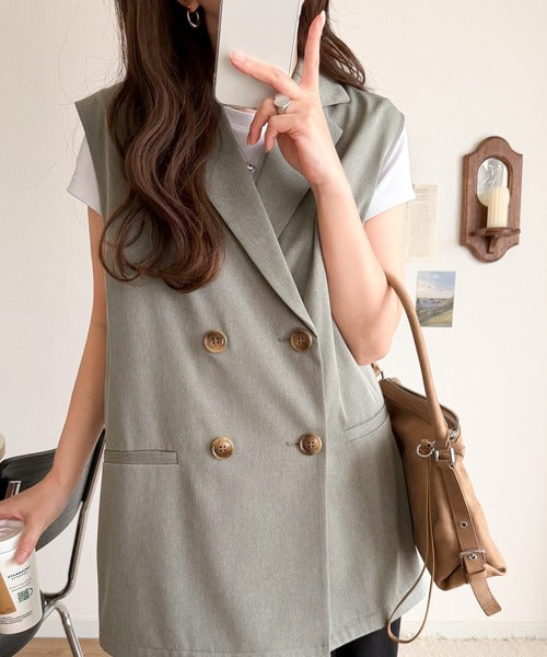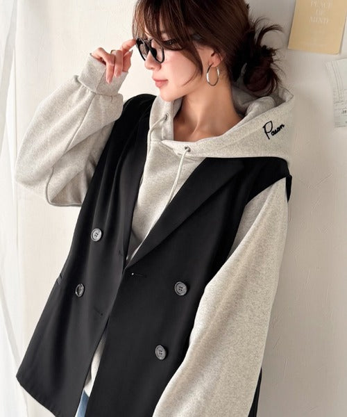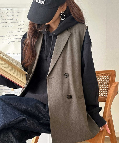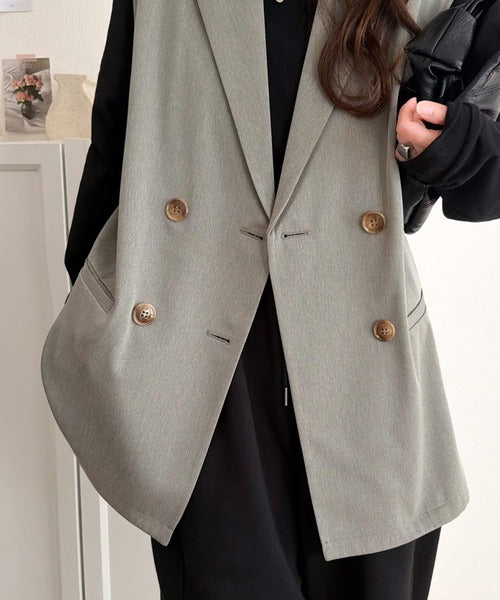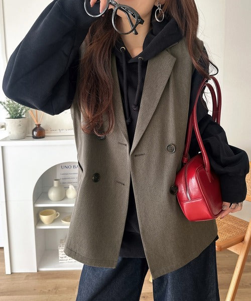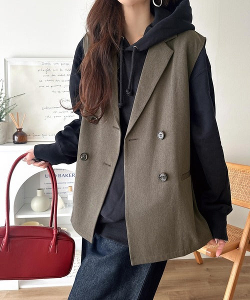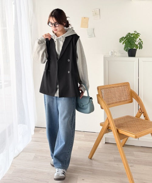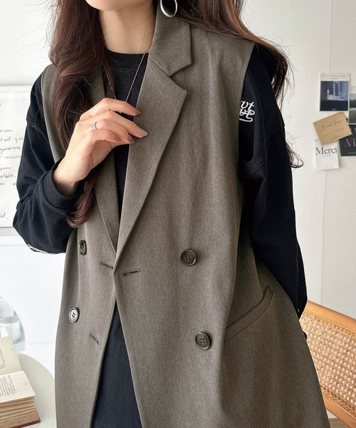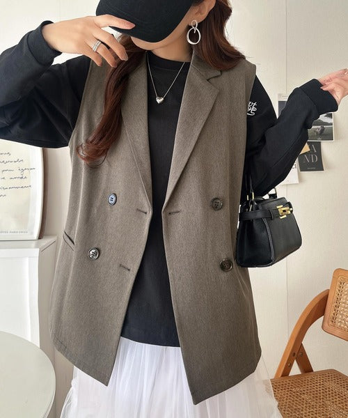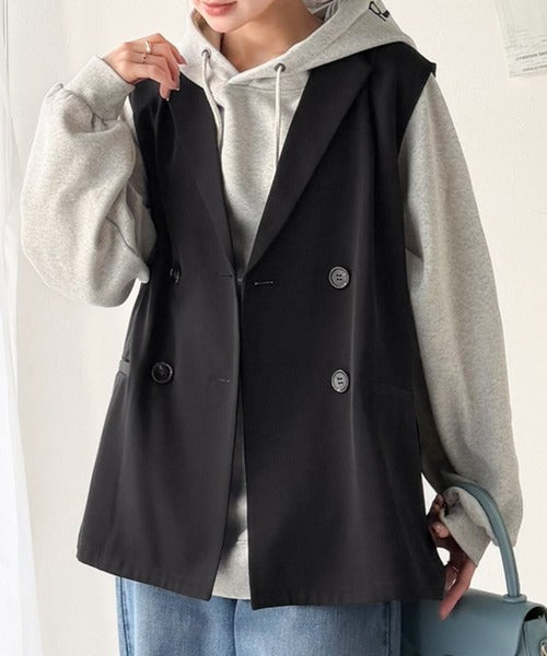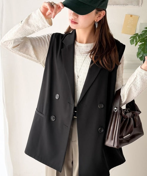いつものコーデに重ねるだけ。即、今っぽこなれ感。ダブルジャケットジレベスト ce1025008