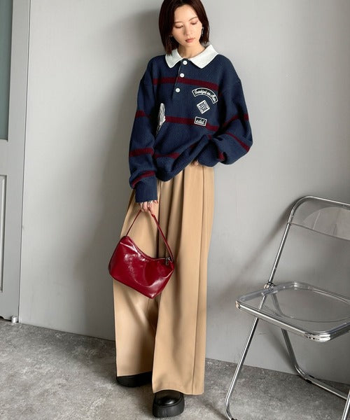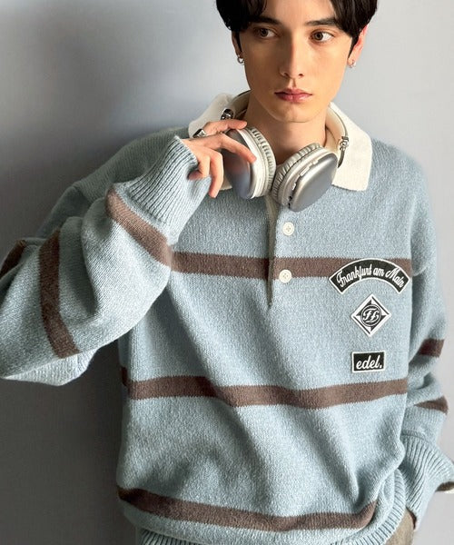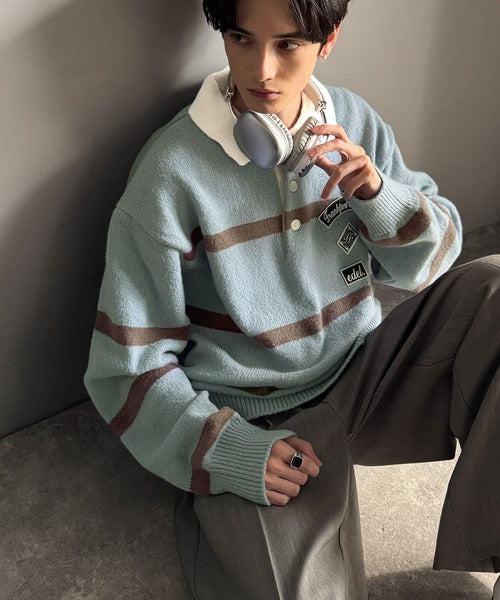 新しいスタイルを提案するワッペンデザインラガーポロニット。