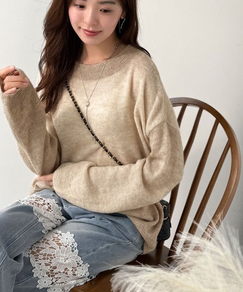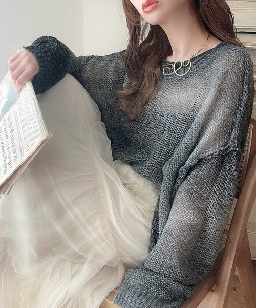 ゆったりしたシルエットとシアーな透かし編みが特徴です。