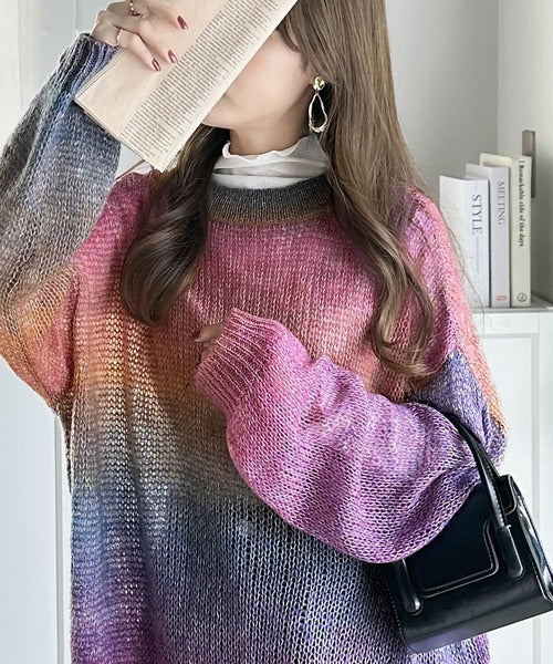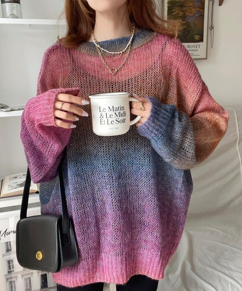 《JAVAジャバ 別注》お洒落&抜け感。マルチウェイ グラデーション メッシュ編みニット ce1260006