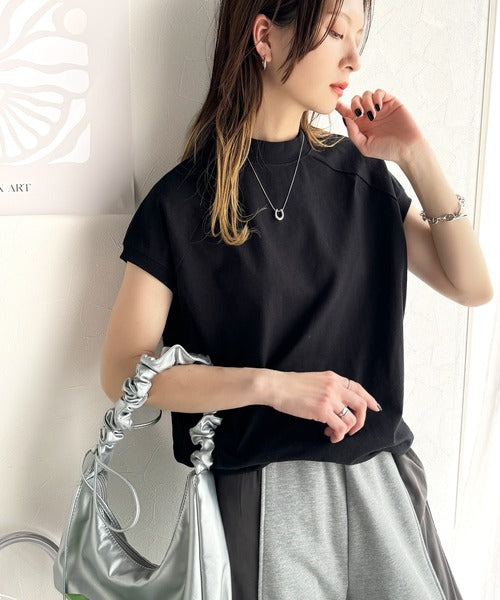 フレンチスリーブでスッキリとした印象のコットンTシャツ。