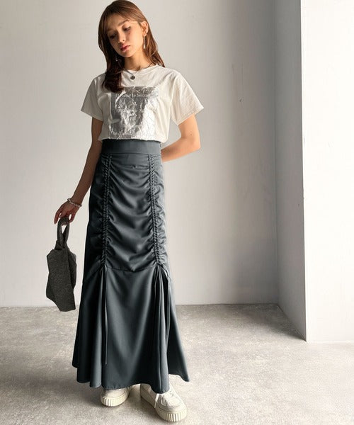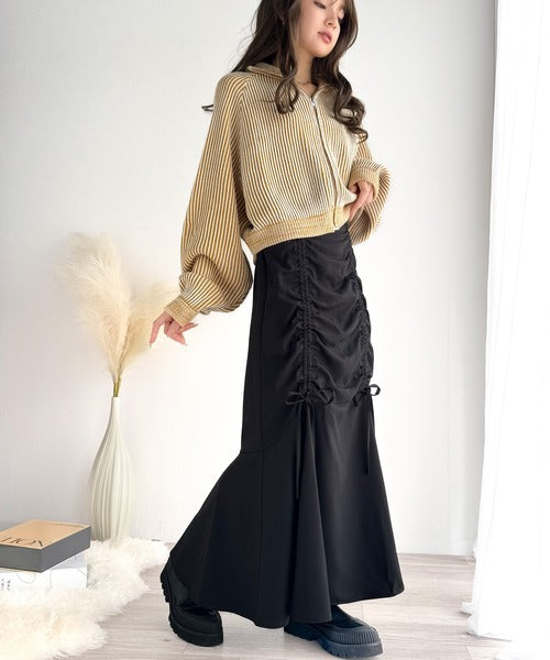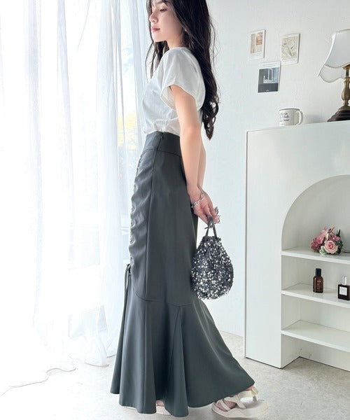 大人可愛い!愛され美ライン。シャーリングリボン使いマーメイドスカート(ロング丈) ce0940215