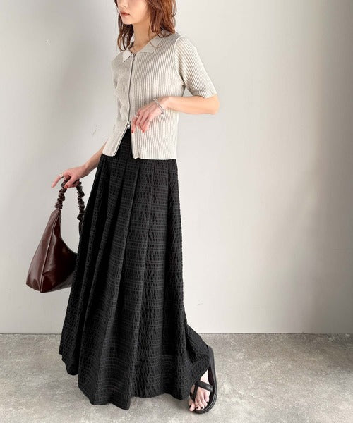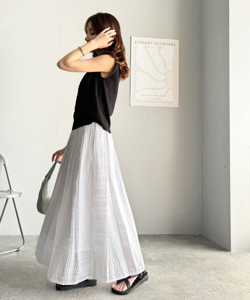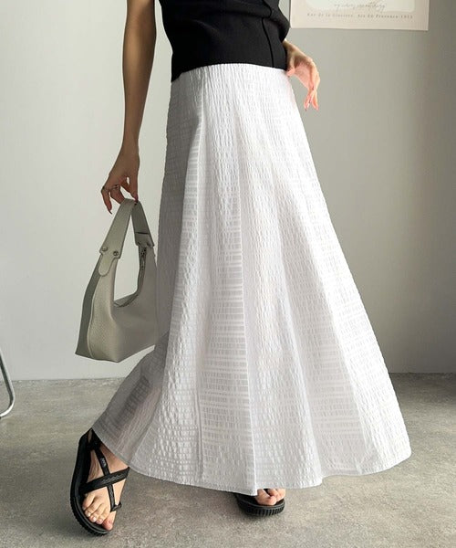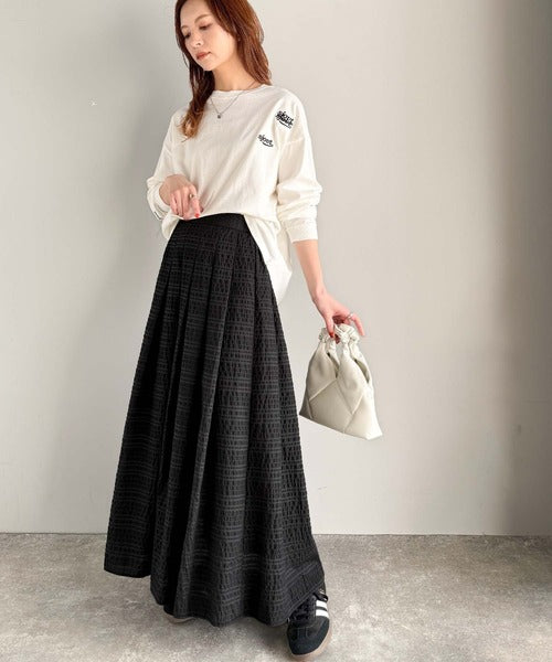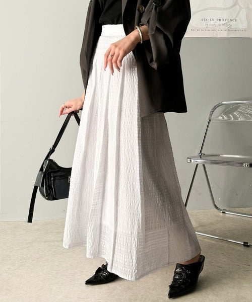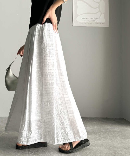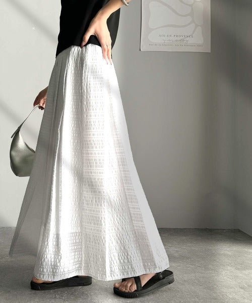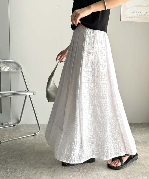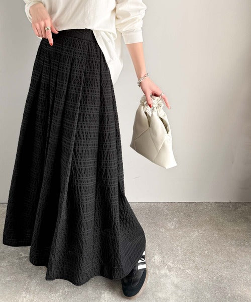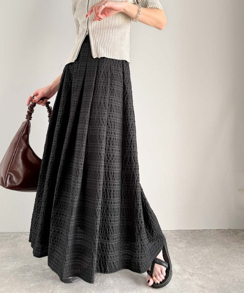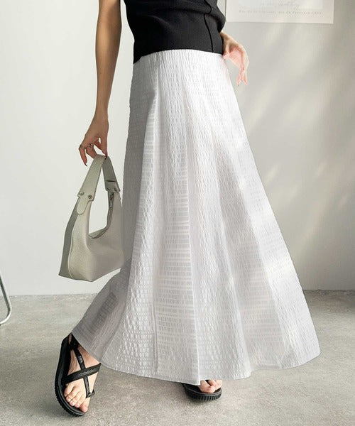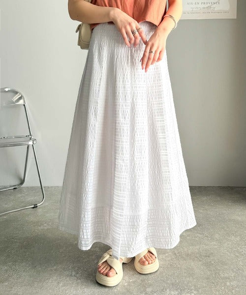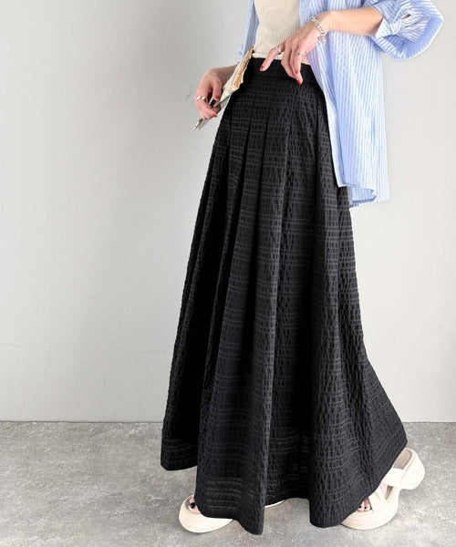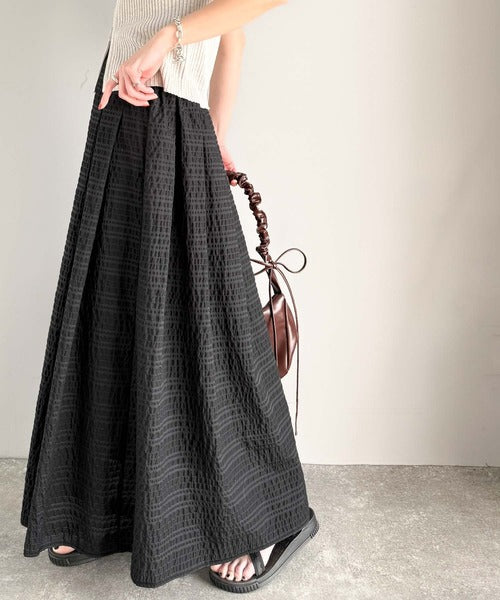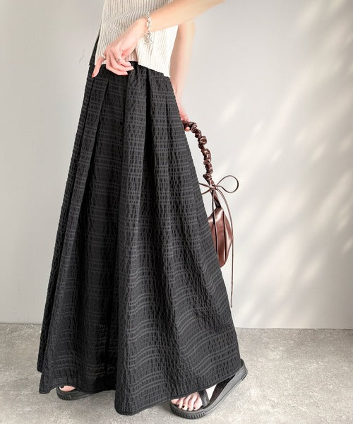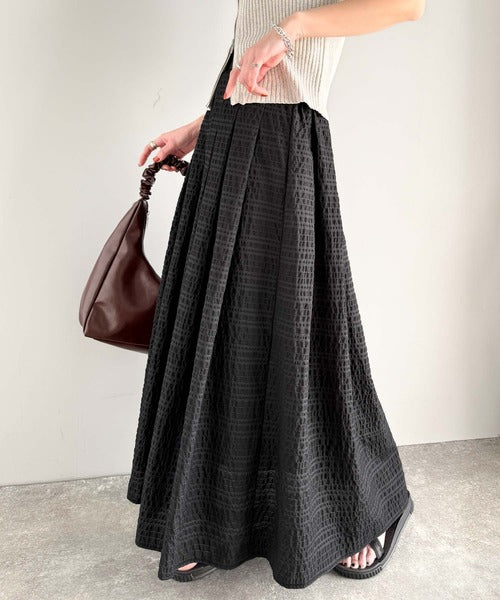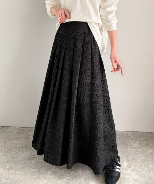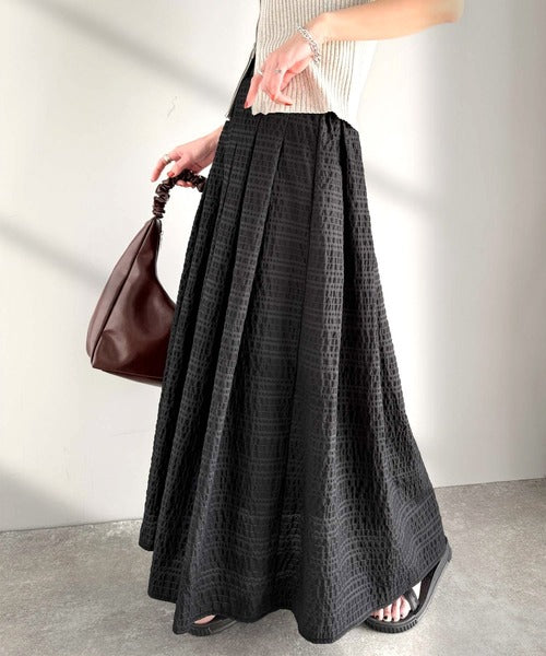 ふんわり愛されシルエット。チェックレースジャガードタックフレアスカート(ロング丈) ce0940231