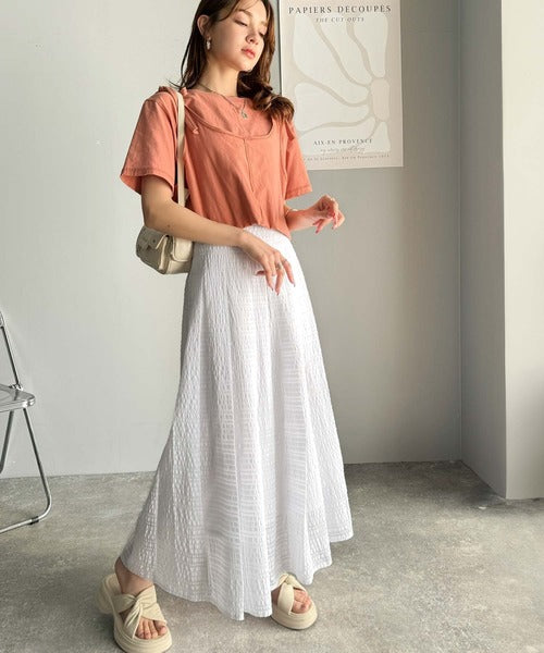 裾に向けてたっぷりの分量のあるフレアスカートです。