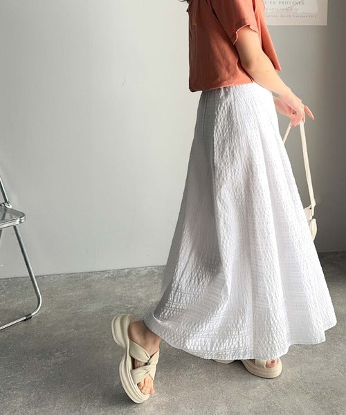 小物をアクセントにして楽しめる大人カジュアルなスカートです。