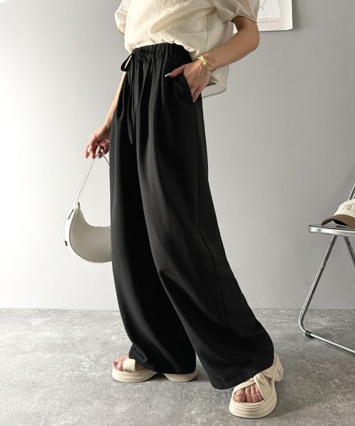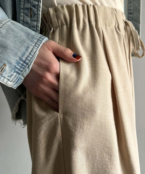 軽やかで薄手なダブルガーゼ素材を使用したイージーパンツは、春夏にぴったりのアイテム。