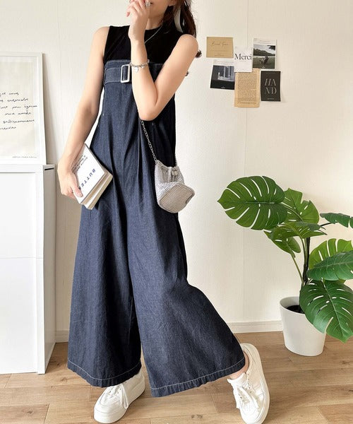 2WAYで楽しむ!旬シルエット。太ベルトライトオンスデニムサロペット ce0940240
