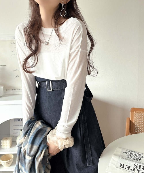 シアーブラウスやジレを重ね着すると洗練された印象をプラスできますよ♪
