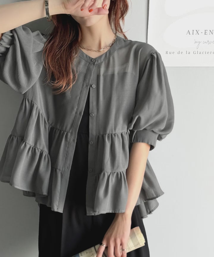 ふんわりフリルで可愛さ倍増!2重ボリューム袖透けティアードブラウス(半袖) ce0940243