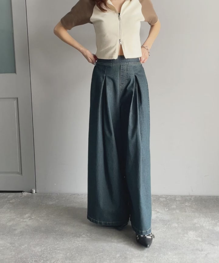 こなれ度アップのヴィンテージ風。変形タック使いワイドデニムパンツ ce0940245