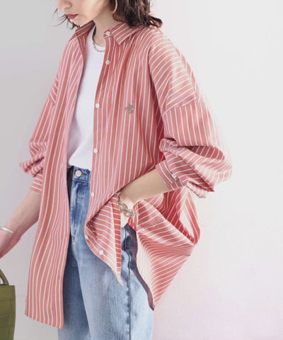 Happyストライプ!ワンポイント刺繍オーバーシャツ ce1010065
