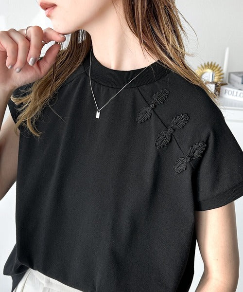 シンプルだけど個性あふれる。チャイナボタンモックネックフレンチT ce1010387
