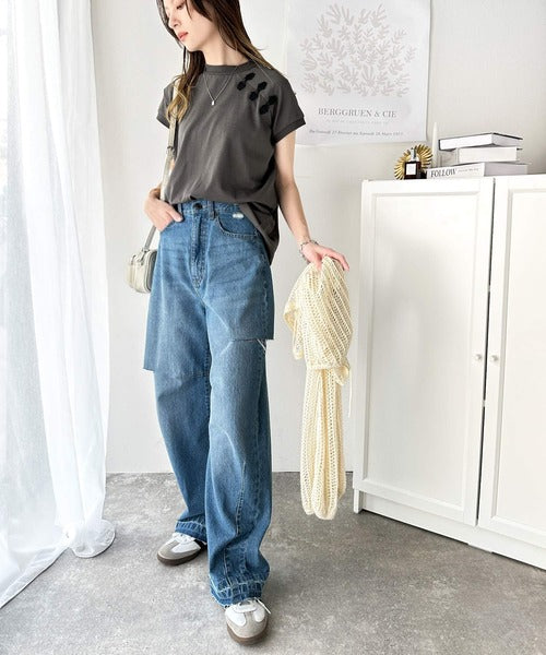 その日の気分に合わせてカーブデニムやフレアパンツを合わせてもOK◎