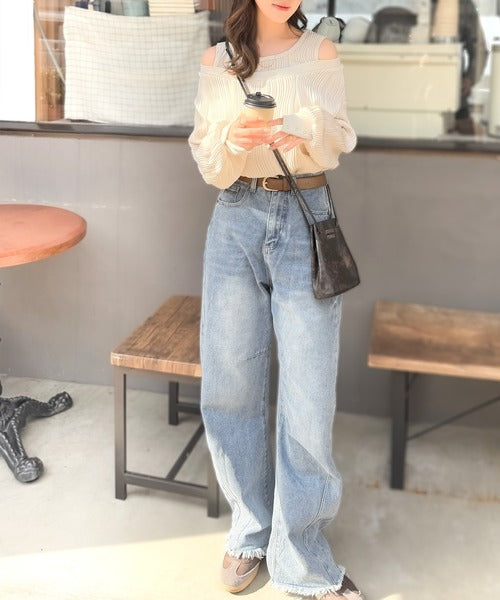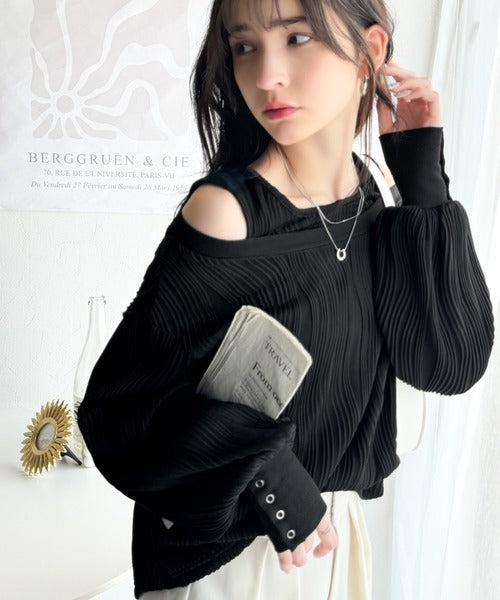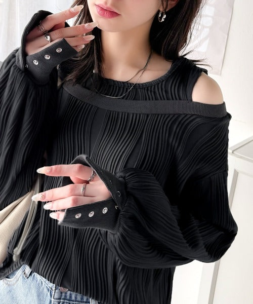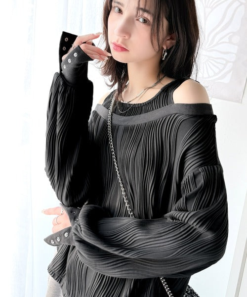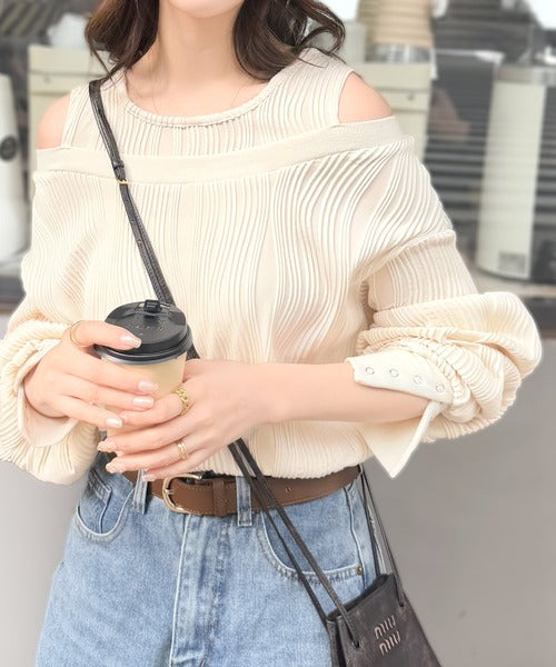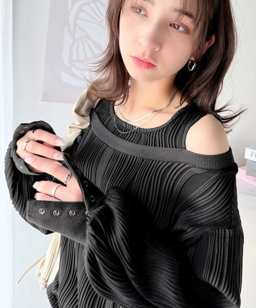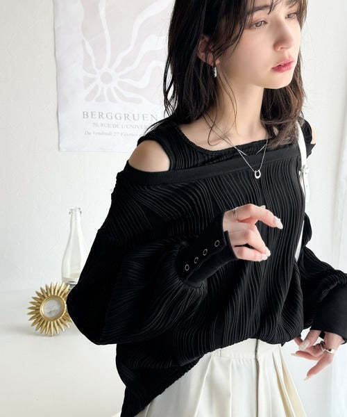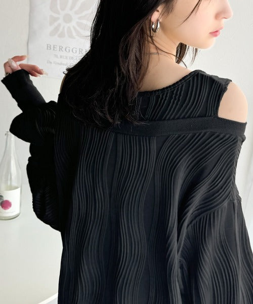 一枚で完成度MAX。フェイクレイヤードオフショルウェーブ柄ジャガードトップス(長袖) ce1010393