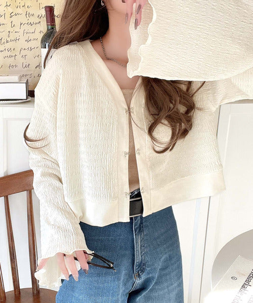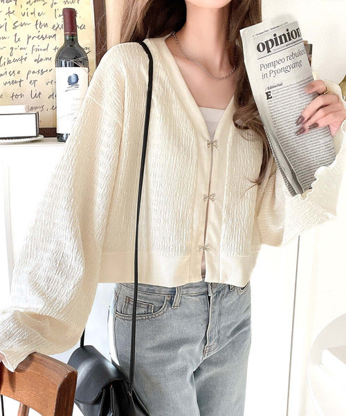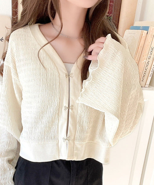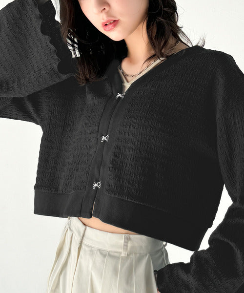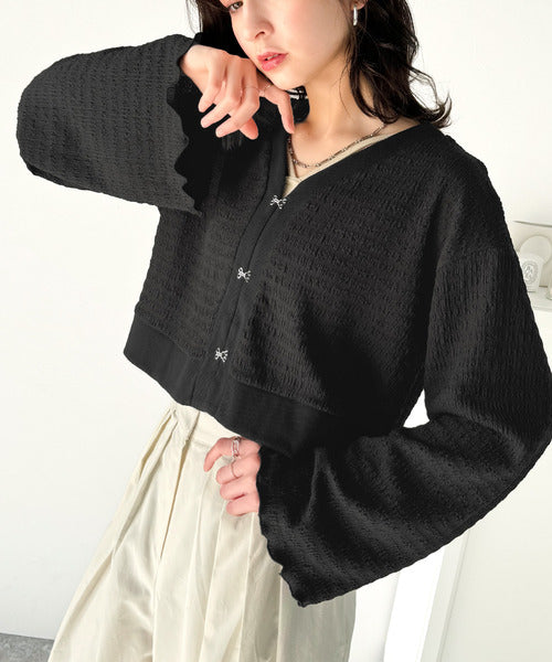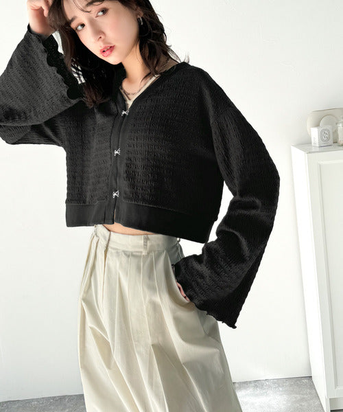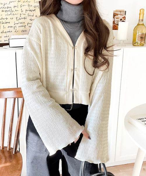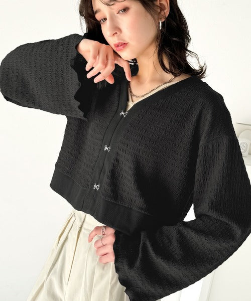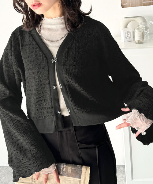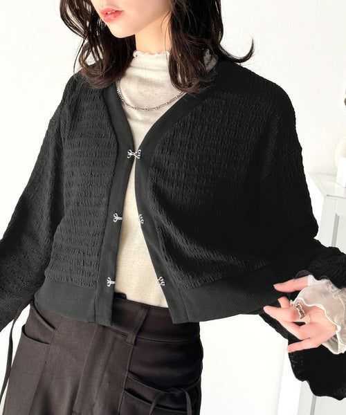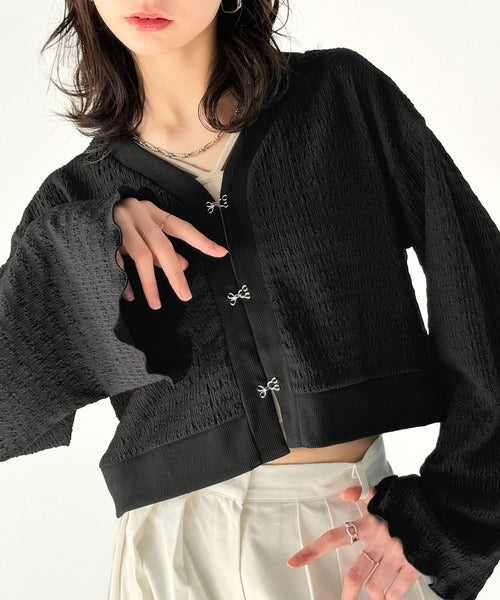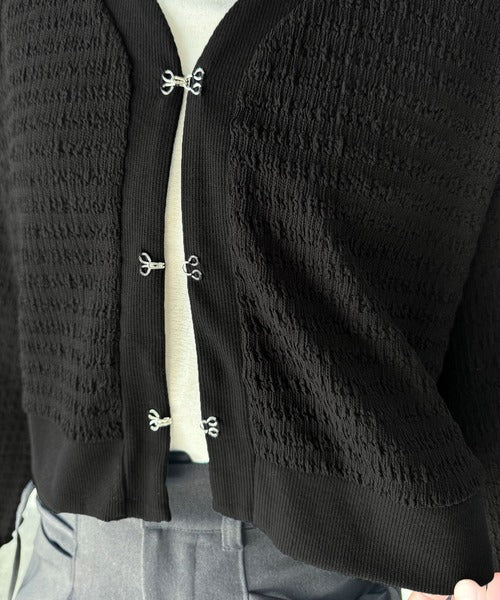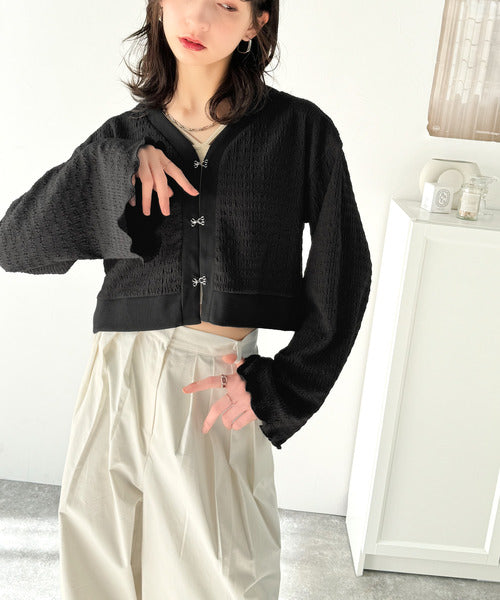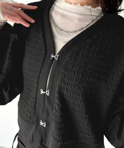 シルエットがキレイ♪ホックデザインショート丈ジャガードカーディガン ce1010401