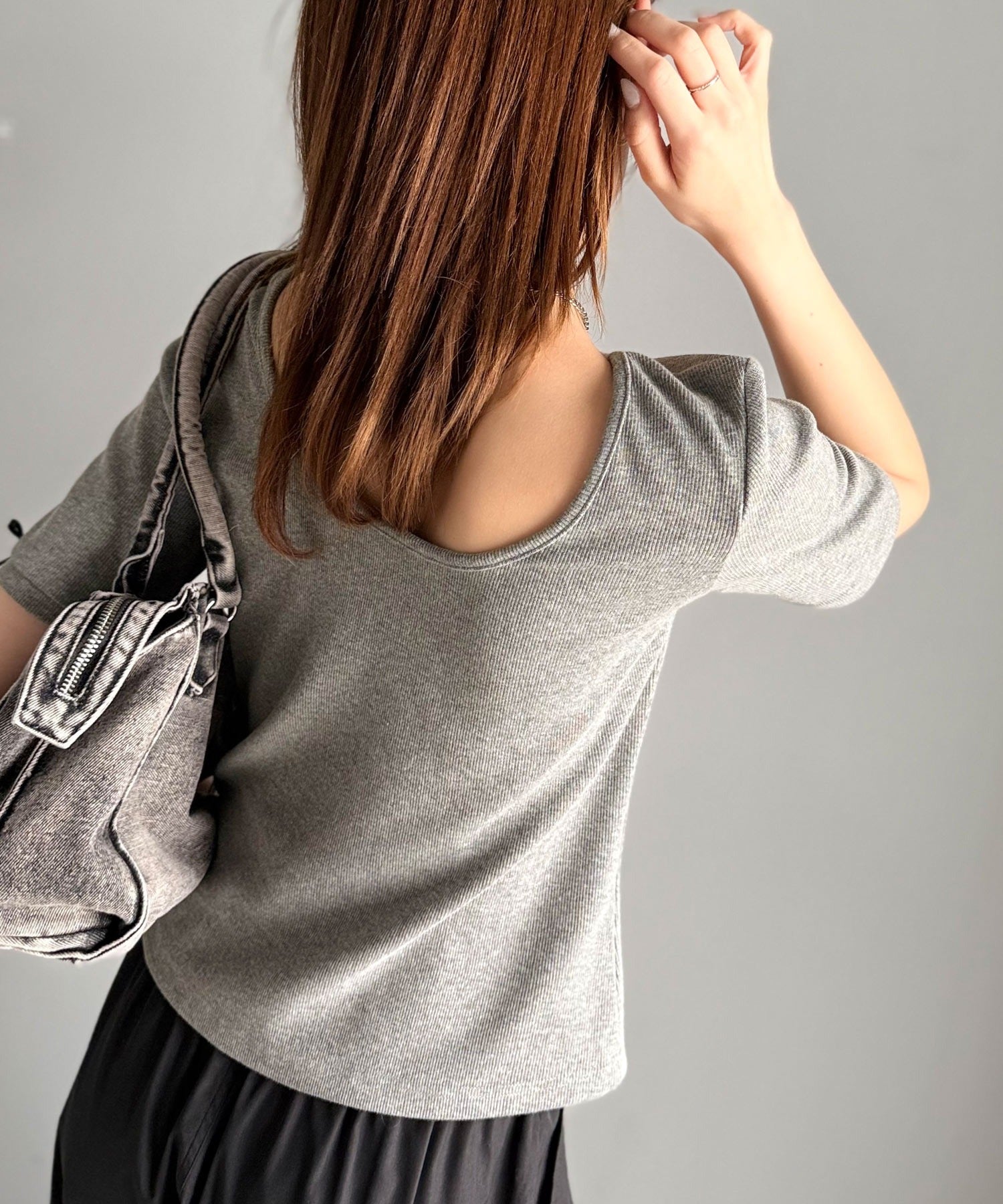 大人の女性にぴったりな、程よい背中開きのデザインが魅力のリブトップス。