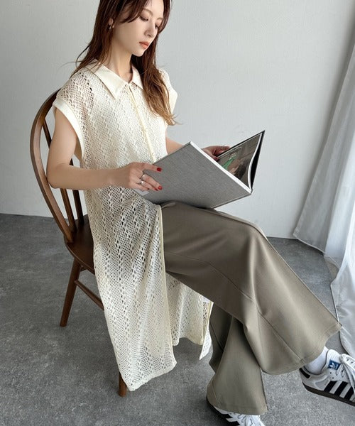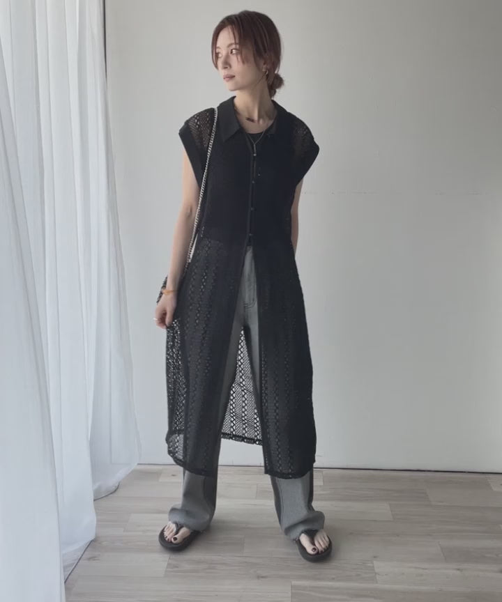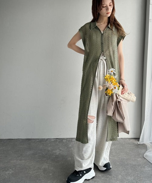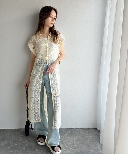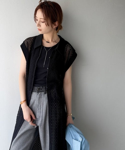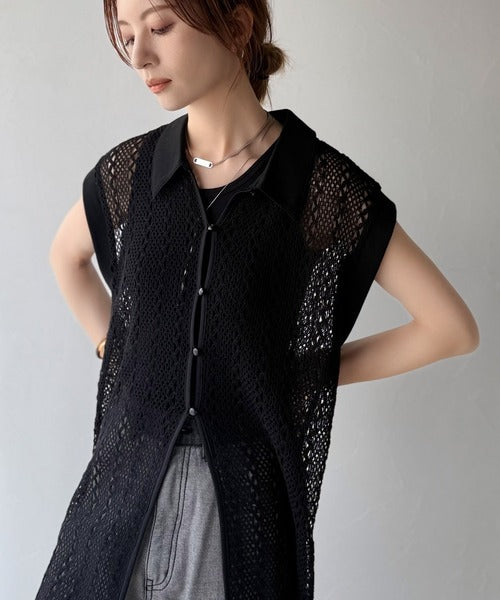 トレンド感たっぷりの魅力を纏う。襟付きクロシェ風レースジレ ce1010438