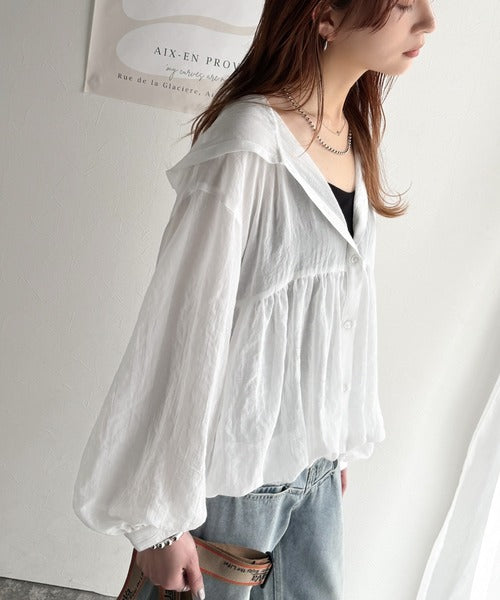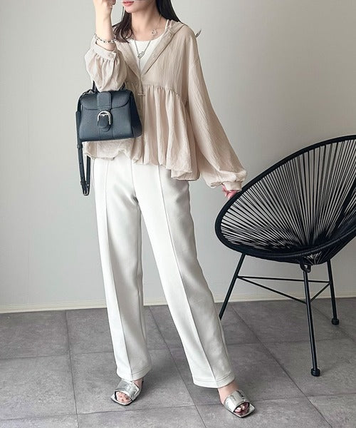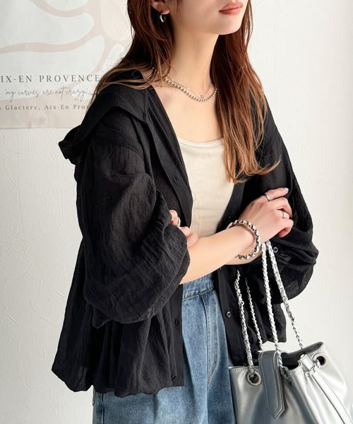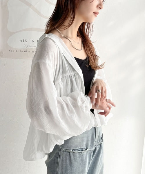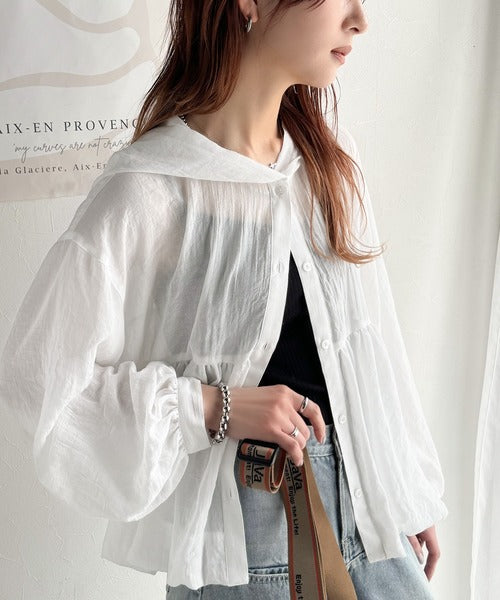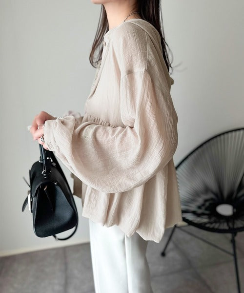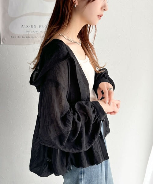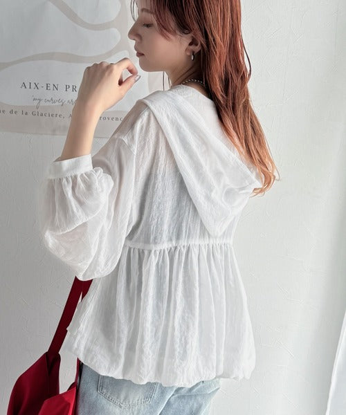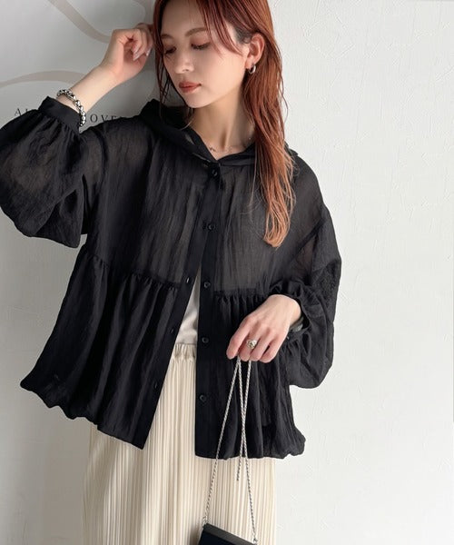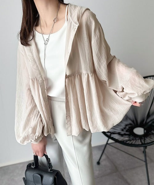 抜け感シアーで軽やかに。フード付きバルーンシルエットの長袖ブラウス ce1010440