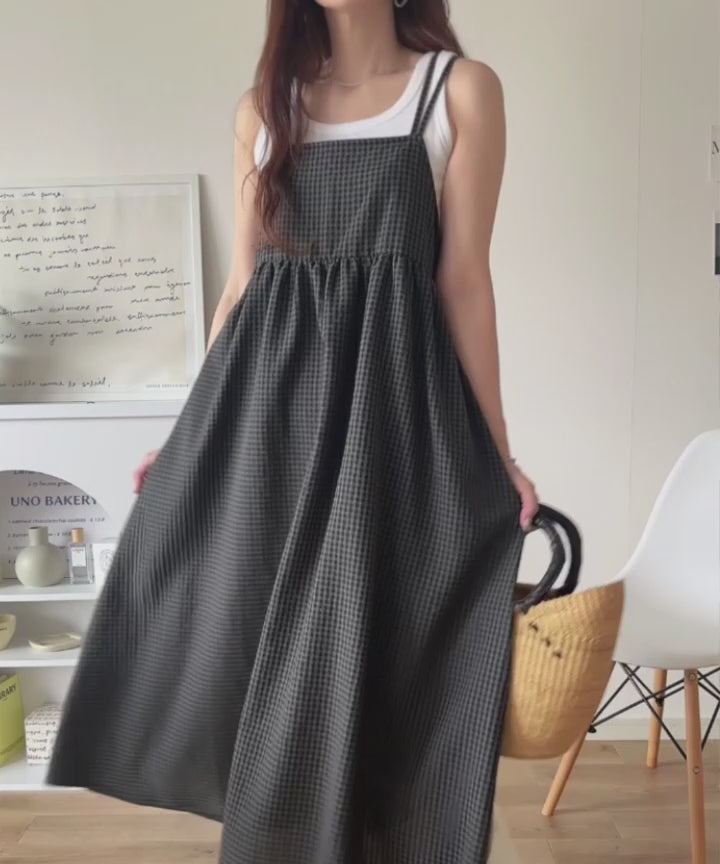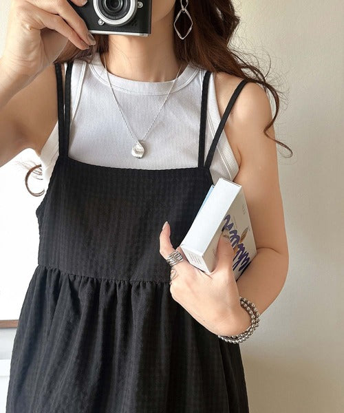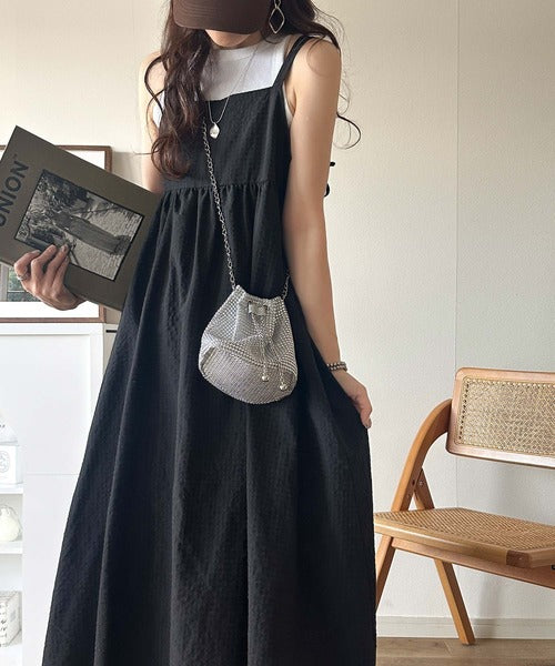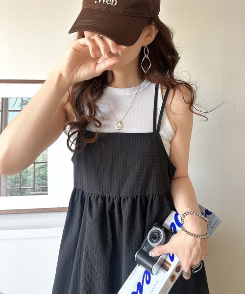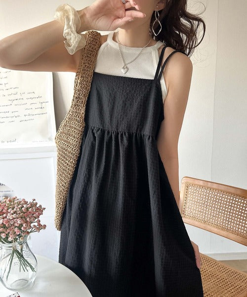 ほんのりシボ感のあるサッカー素材で仕立てた、軽やかな着心地のキャミワンピース。