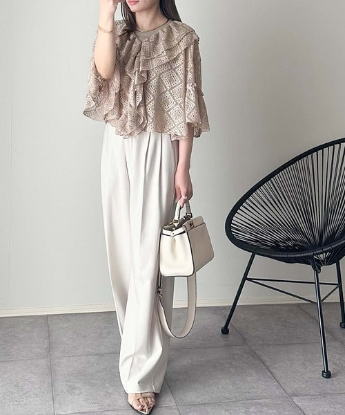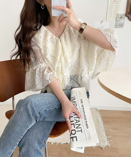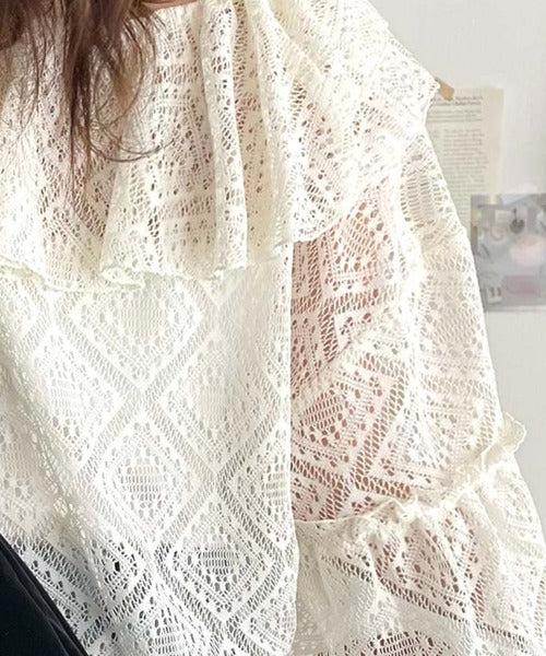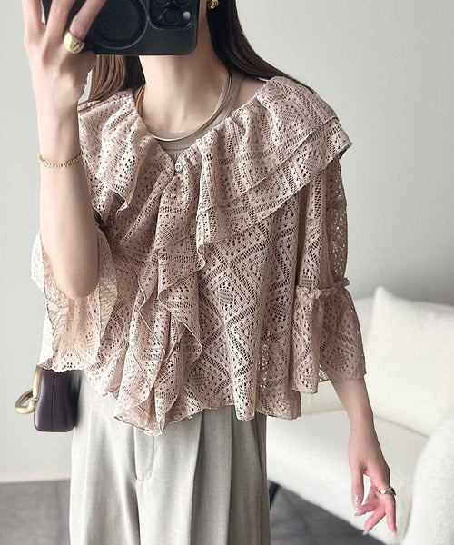 レースの余韻に浸る。ラッフルフリルデザイン総レースブラウス ce1010453