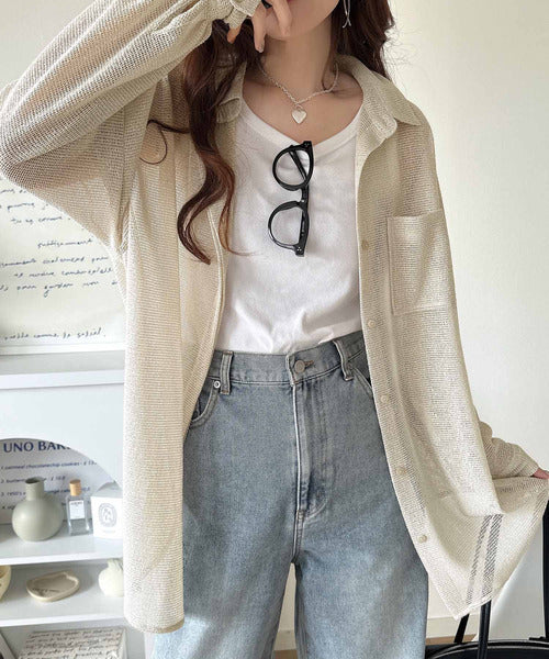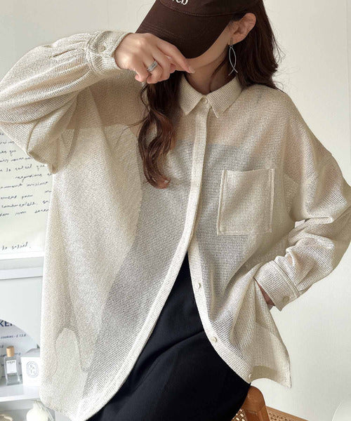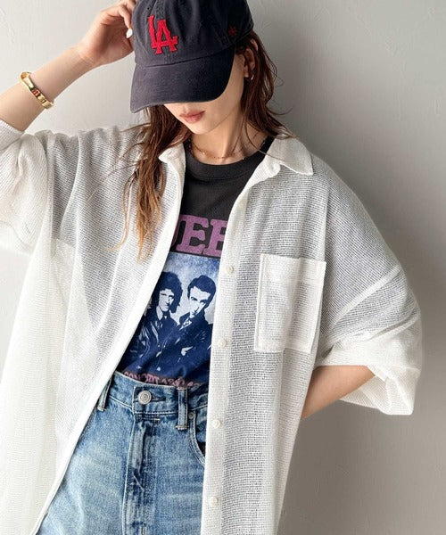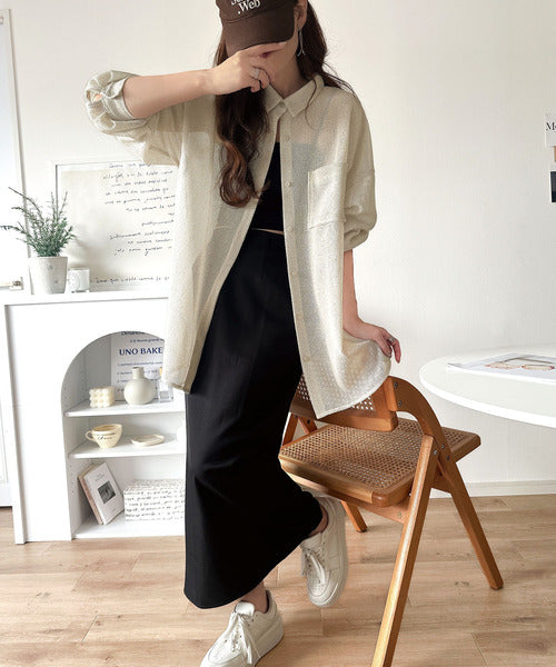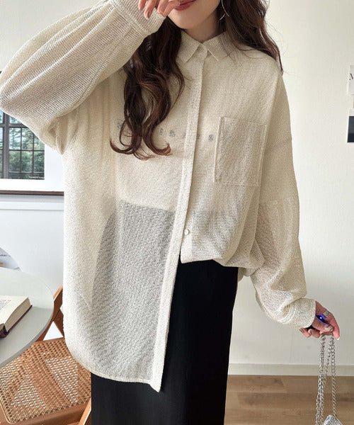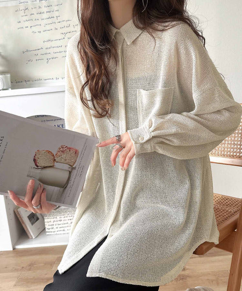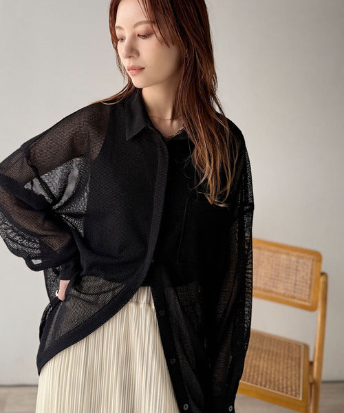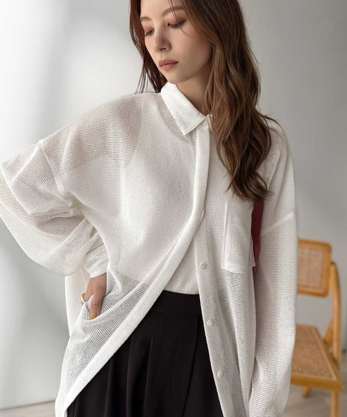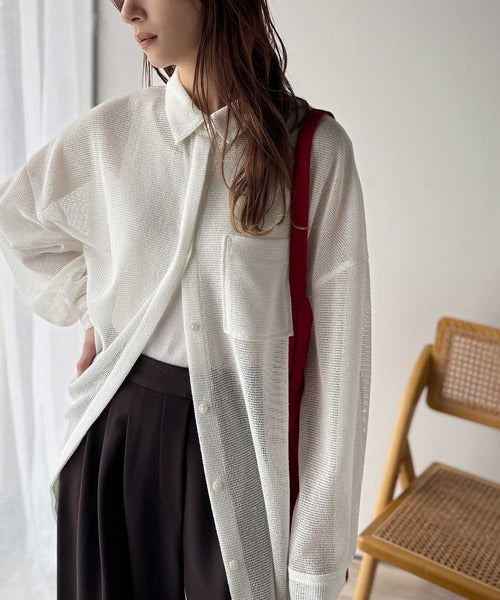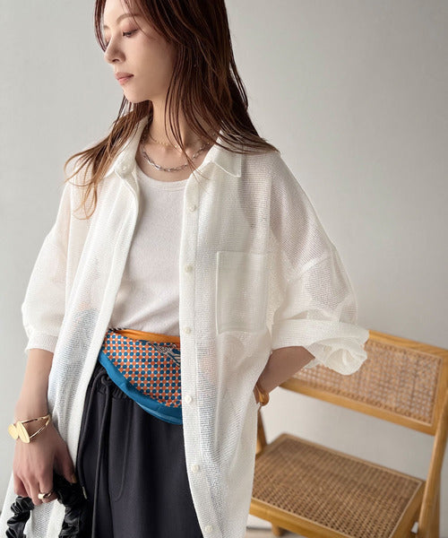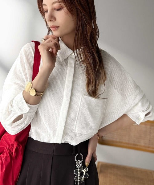 上品カジュアルを楽しめる涼し気メッシュ素材シャツ◎