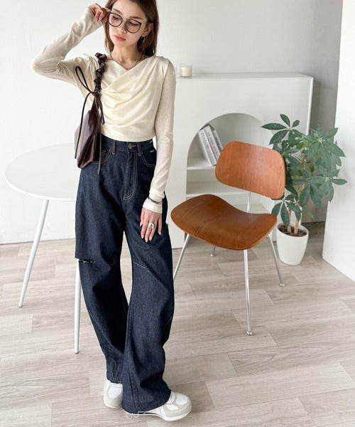 カジュアルコーデを楽しむならカーブデニムやフレアパンツ合わせるのがオススメ!