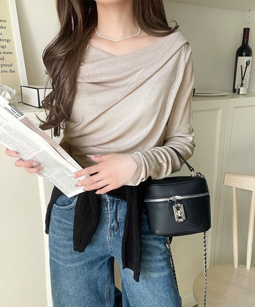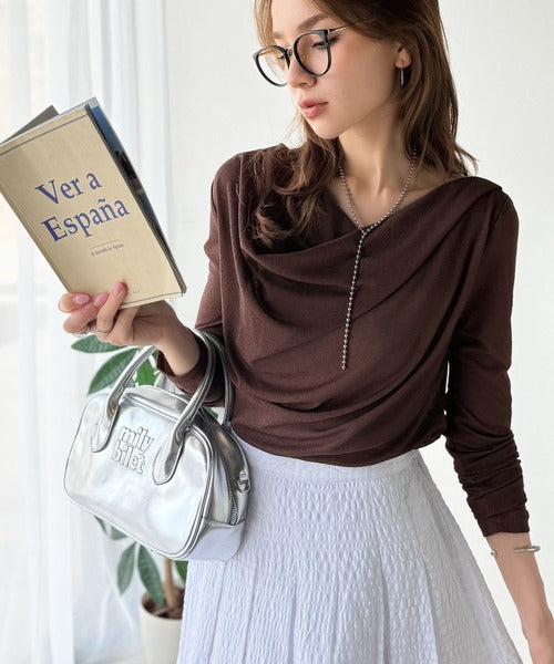 大人のとろみ×透け感。女性らしさが香り立つ。スラブシアードレープトップス(長袖) ce1010473